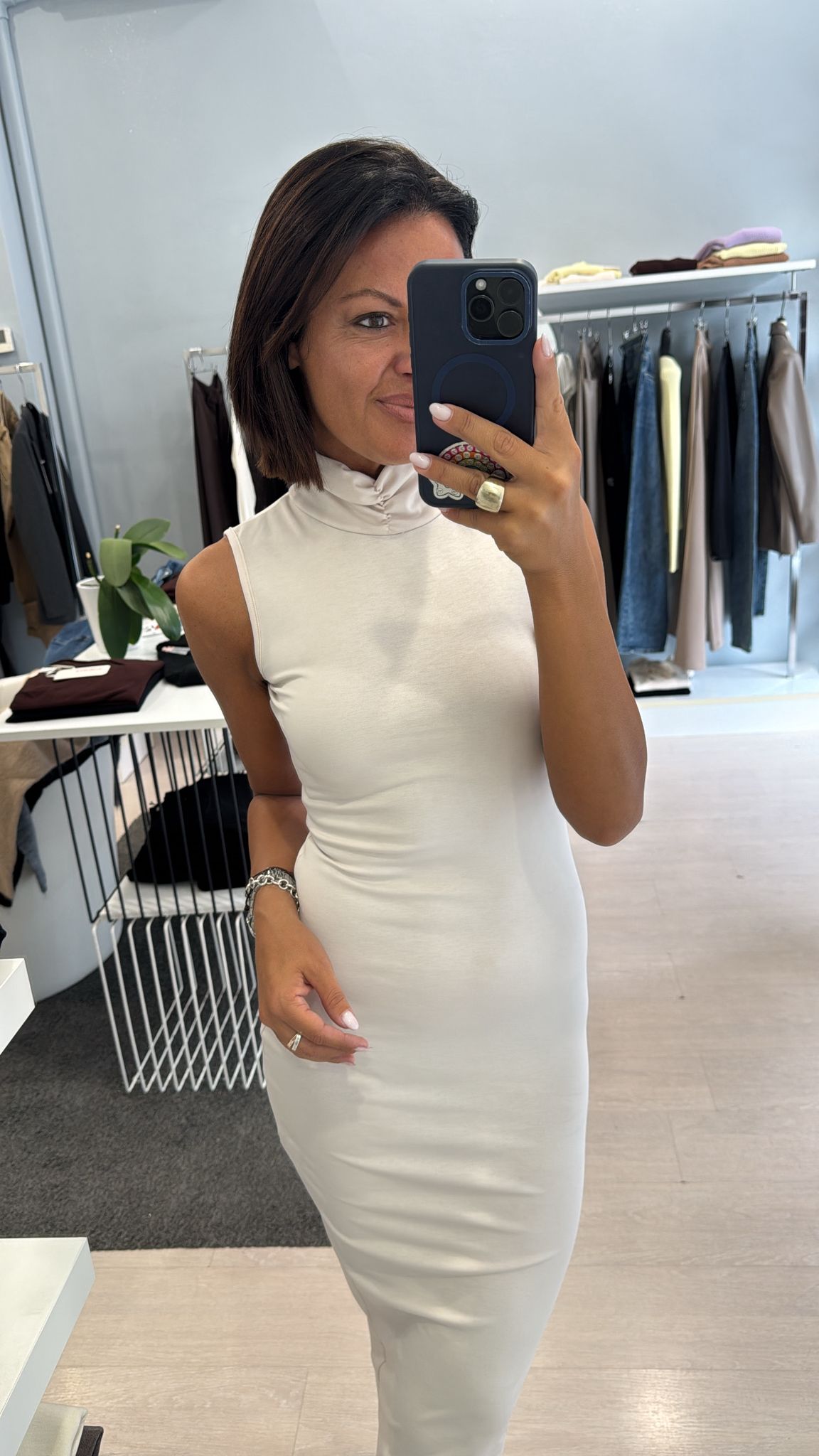 Abito modello tubino, smanicato con collo a lupetto drappeggiato, lunghezza alla caviglia vestibilità regolare IN FOTO INDOSSO LA XS colore...