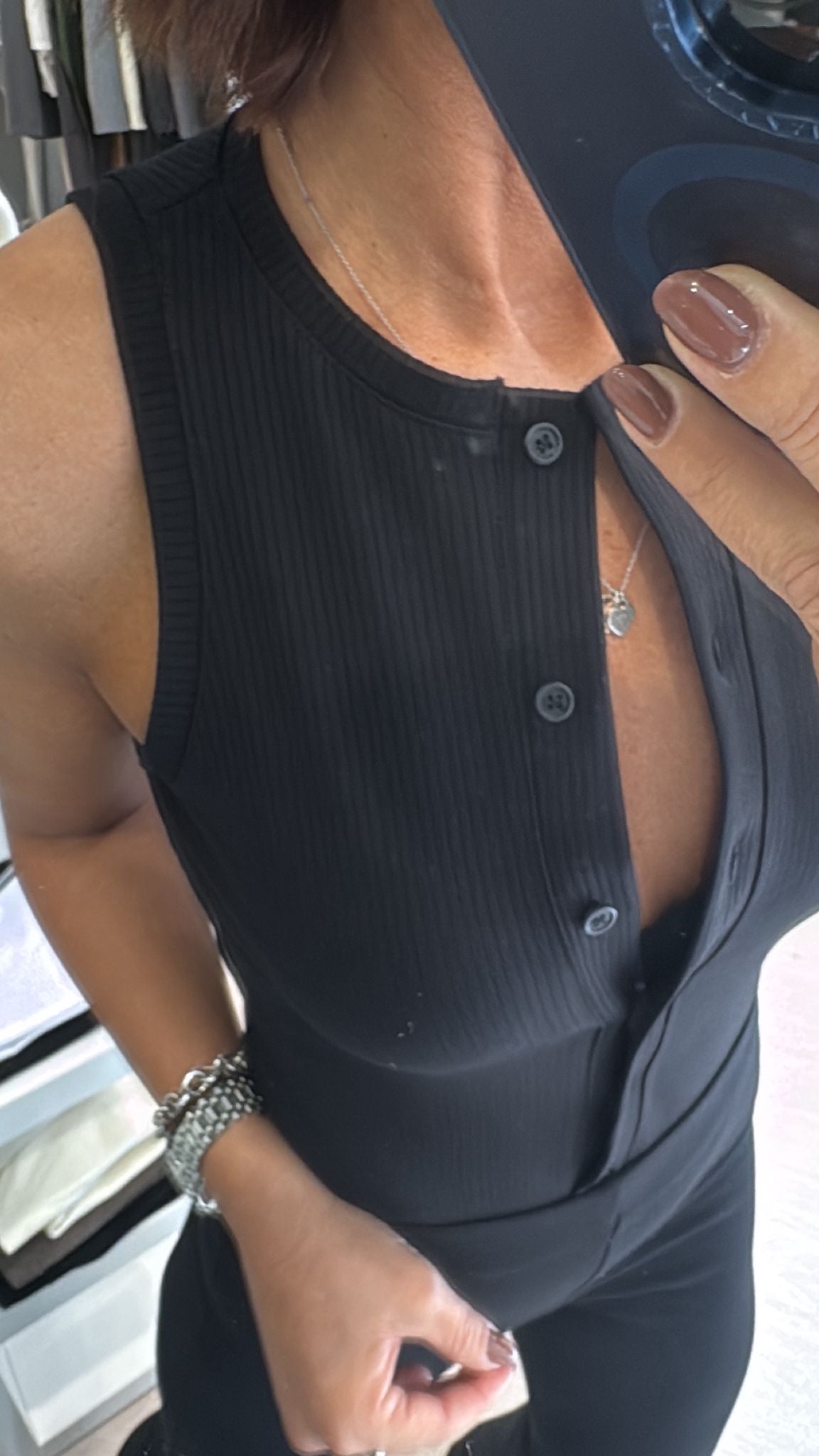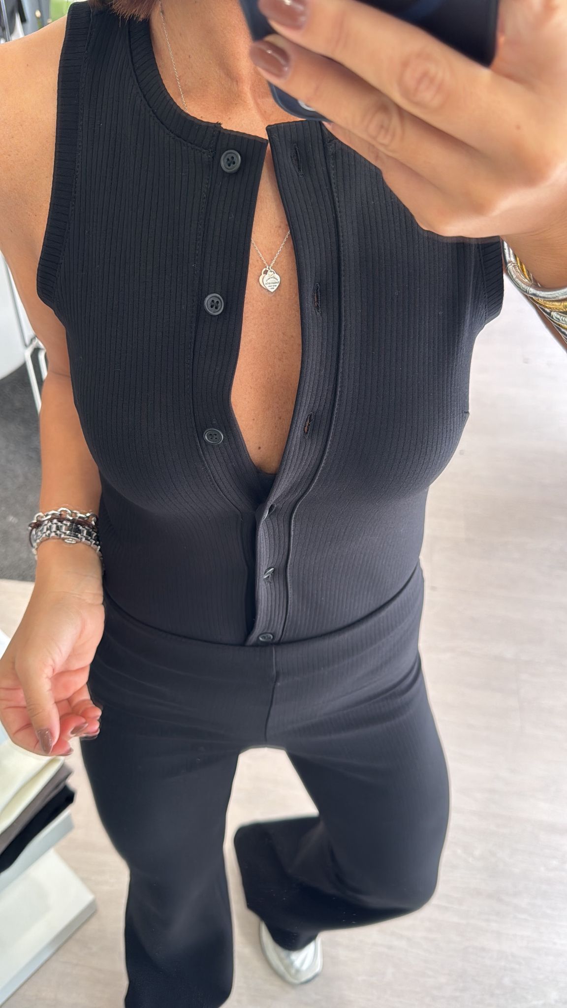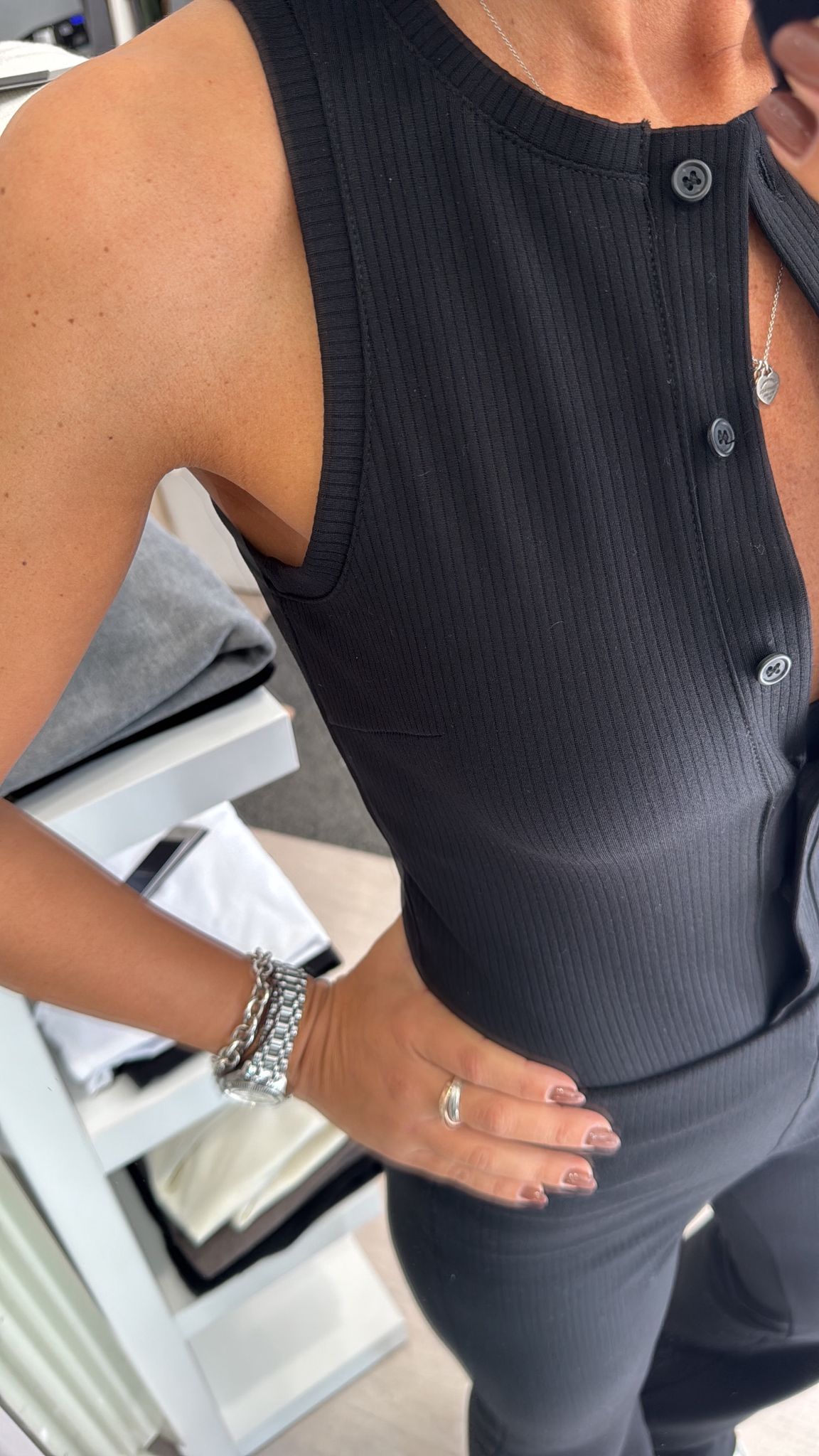 Body a canotta con abbottonatura frontale, modello elasticizzato, sfiancato, lavorazione rigata tono su tono FA COMPLETO CON IL PANTALONE A...