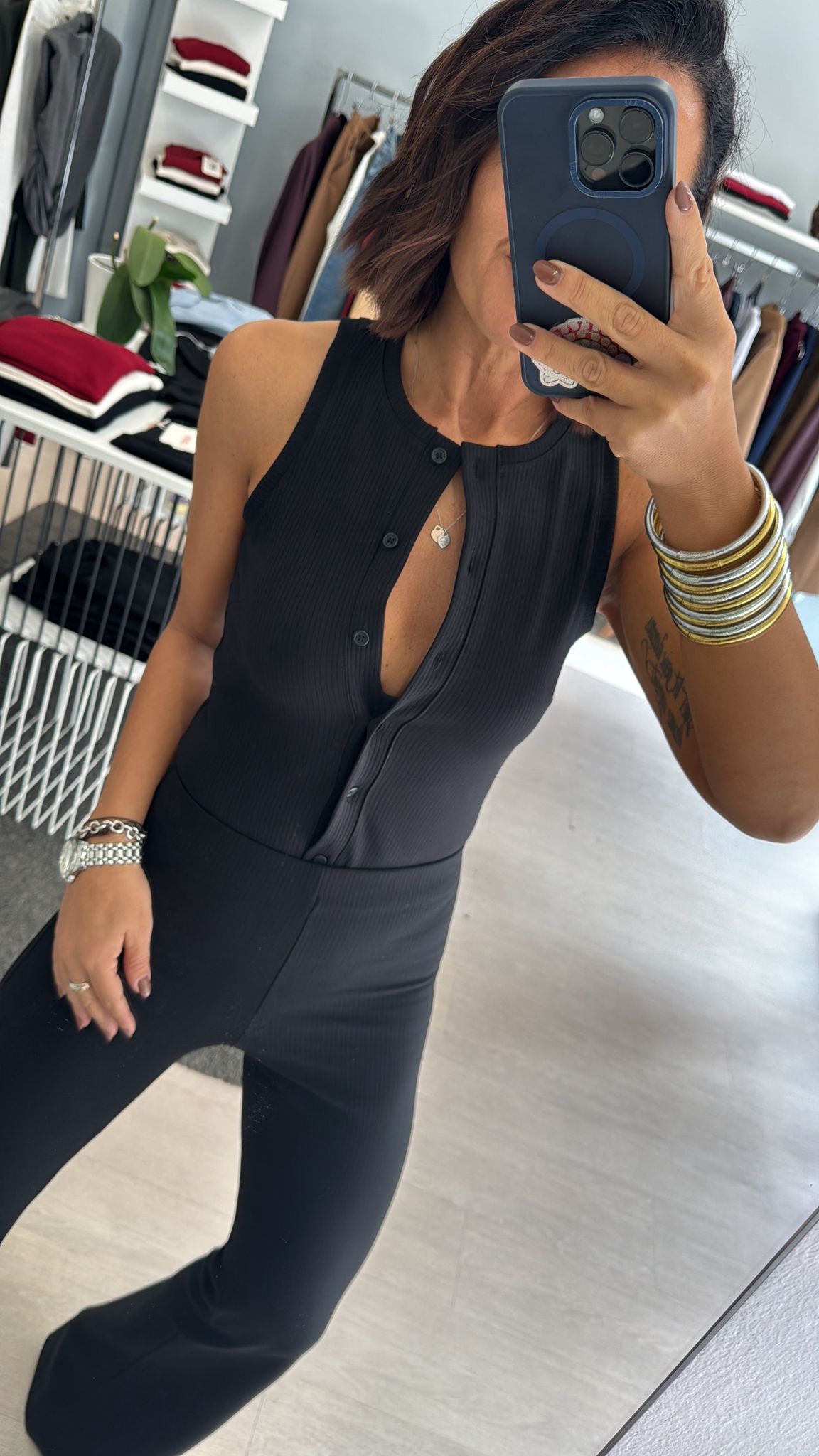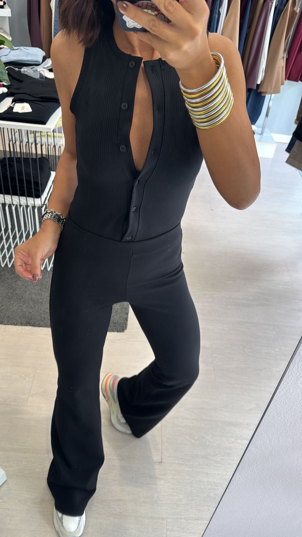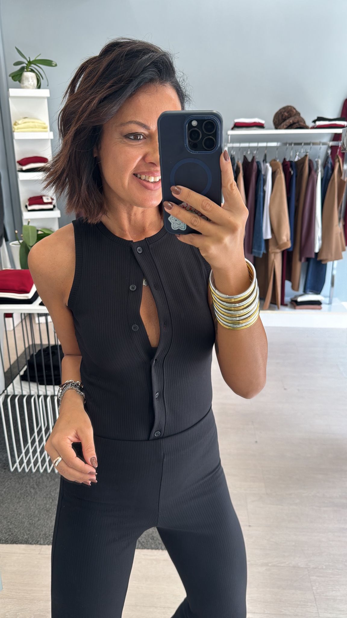 Body a canotta con abbottonatura frontale, modello elasticizzato, sfiancato, lavorazione rigata tono su tono FA COMPLETO CON IL PANTALONE A...