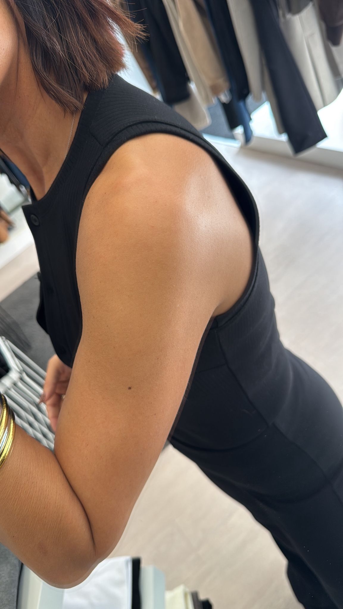 Body a canotta con abbottonatura frontale, modello elasticizzato, sfiancato, lavorazione rigata tono su tono