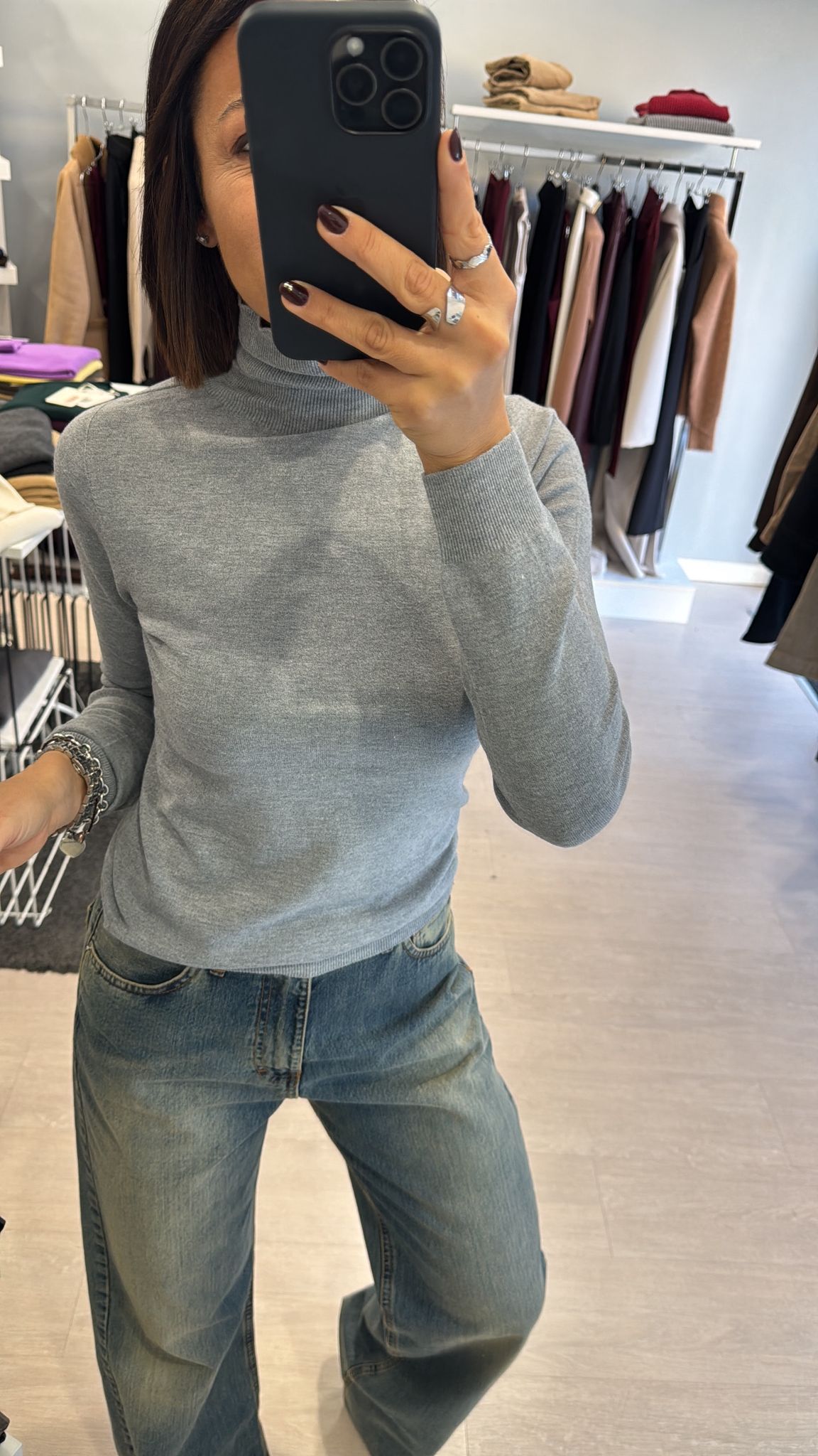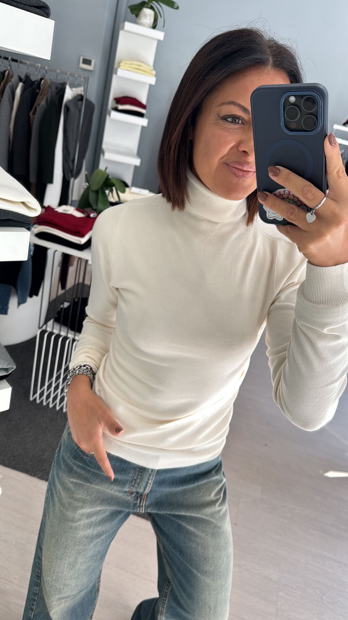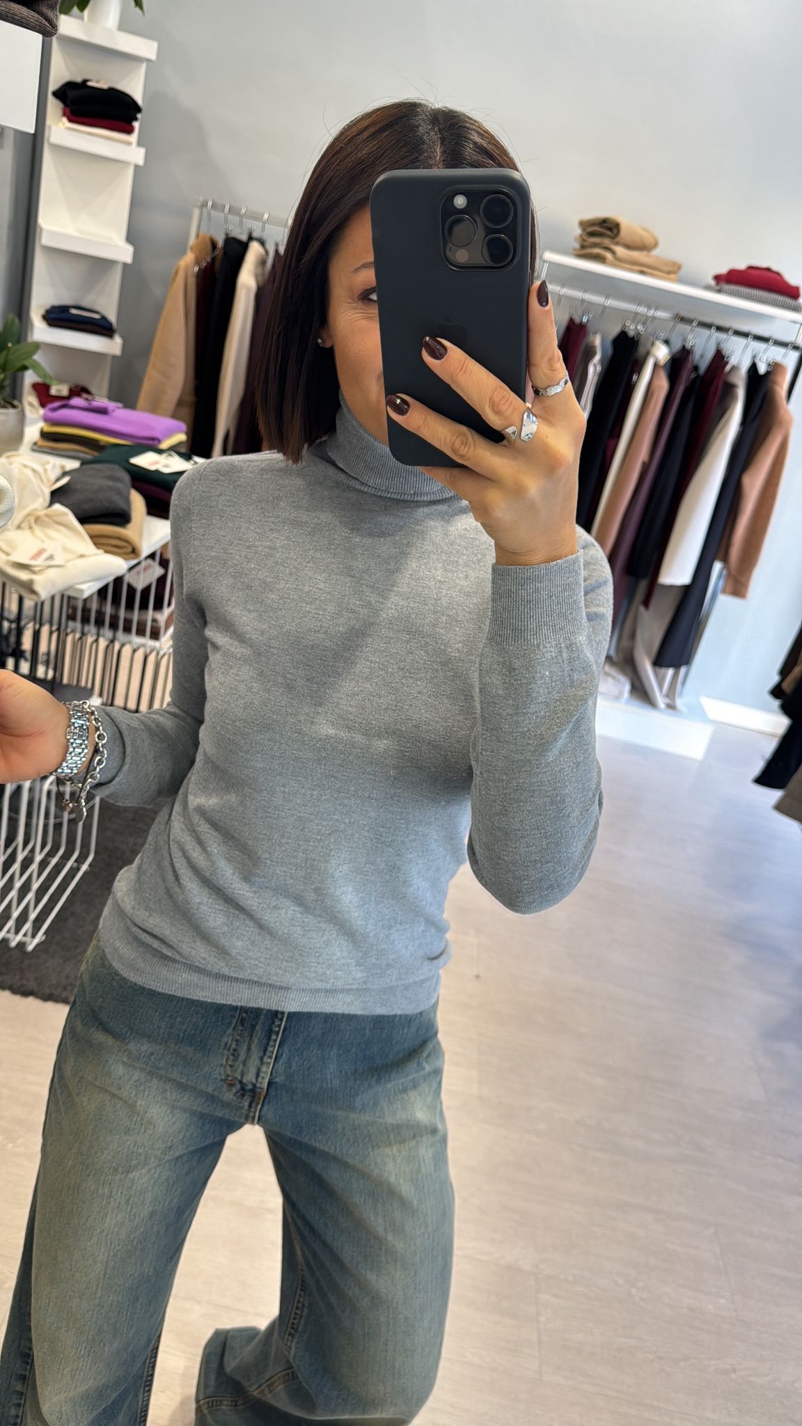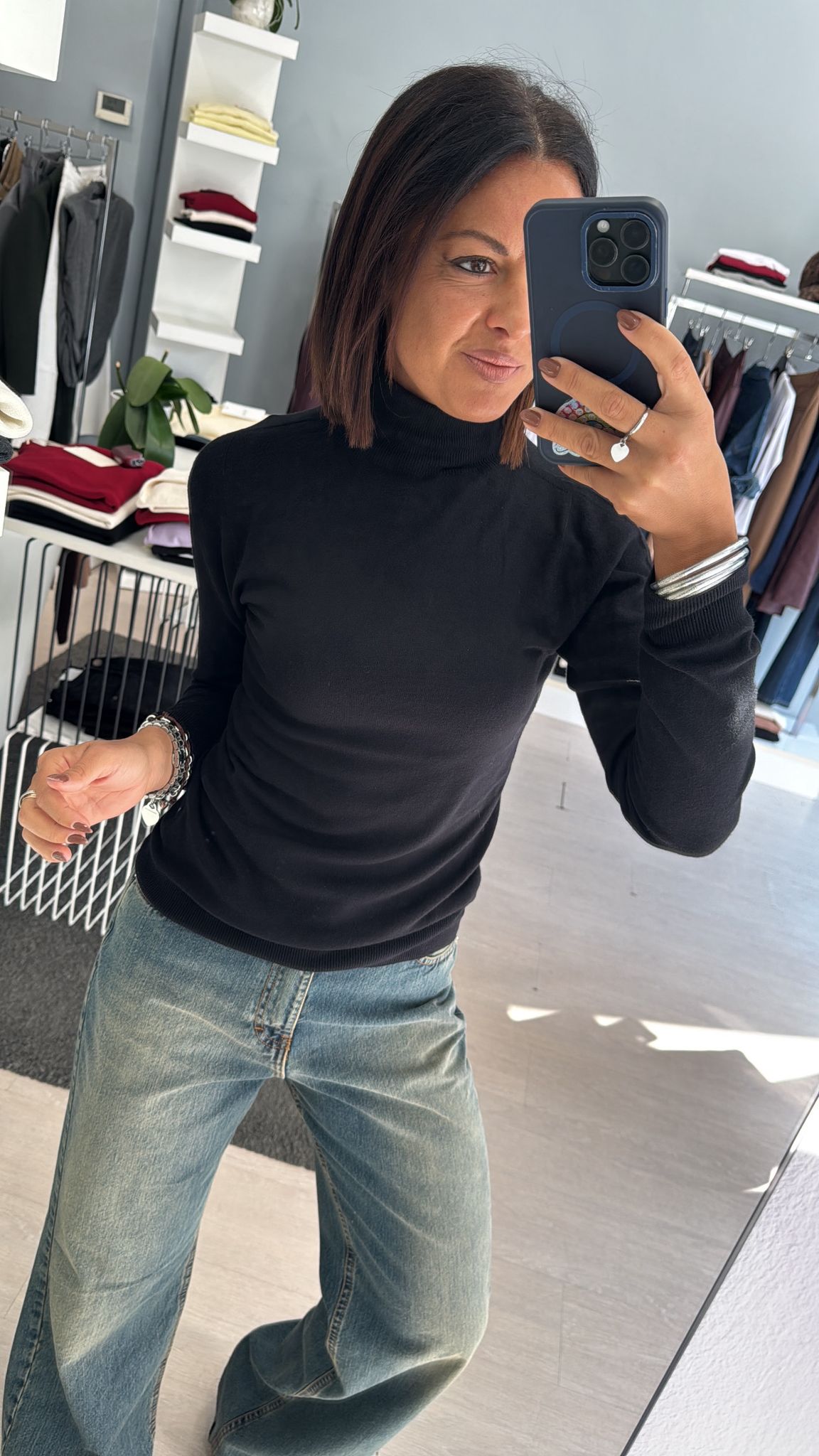 Dolcevita rasato modello basico continuativo, sfiancato ma non stretto, lunghezza regolare