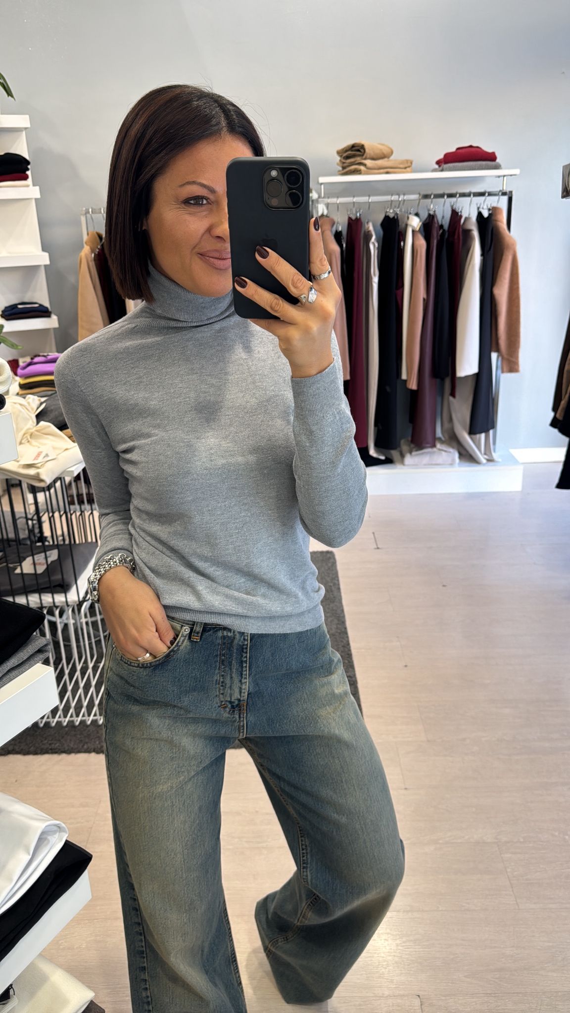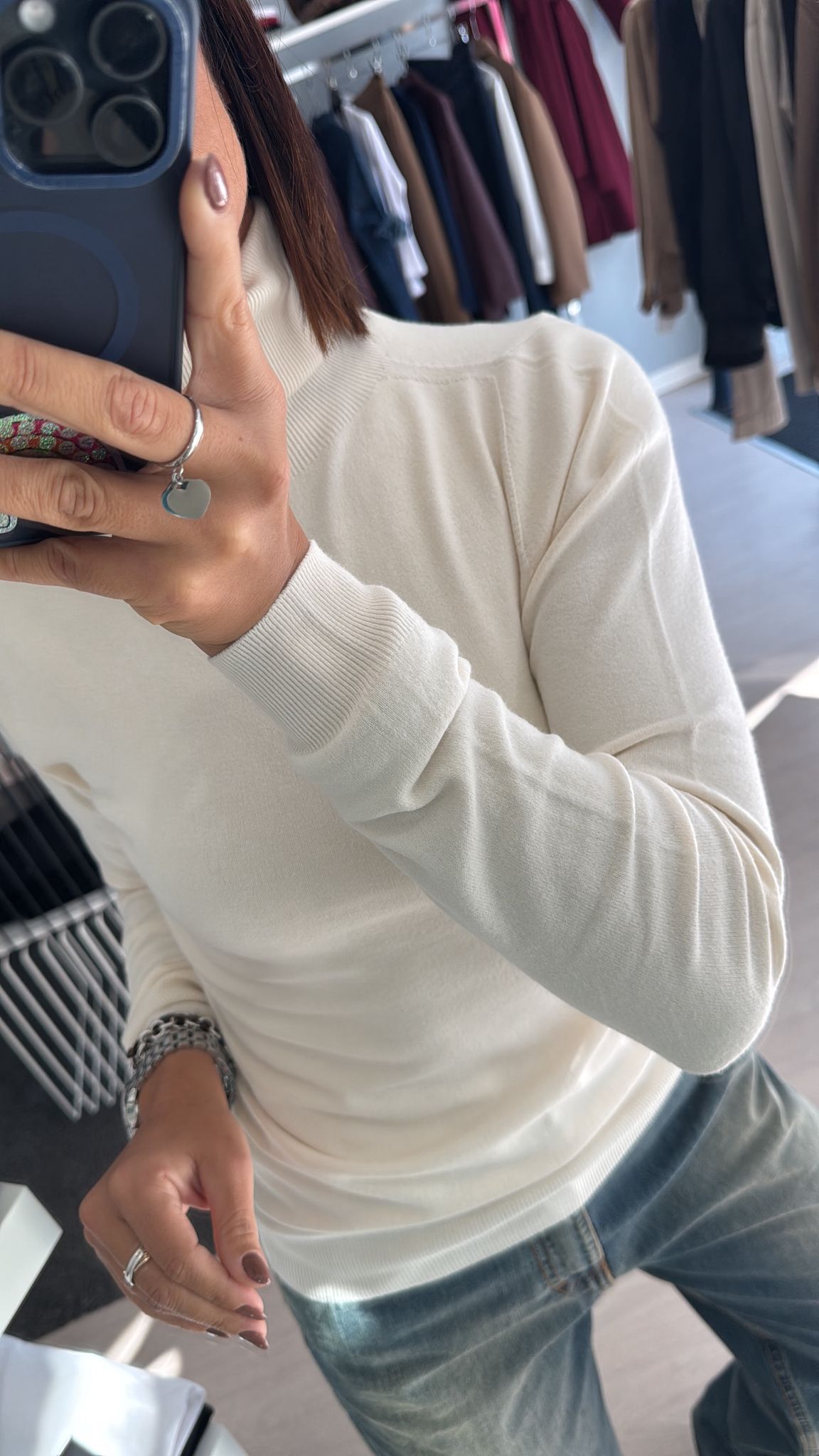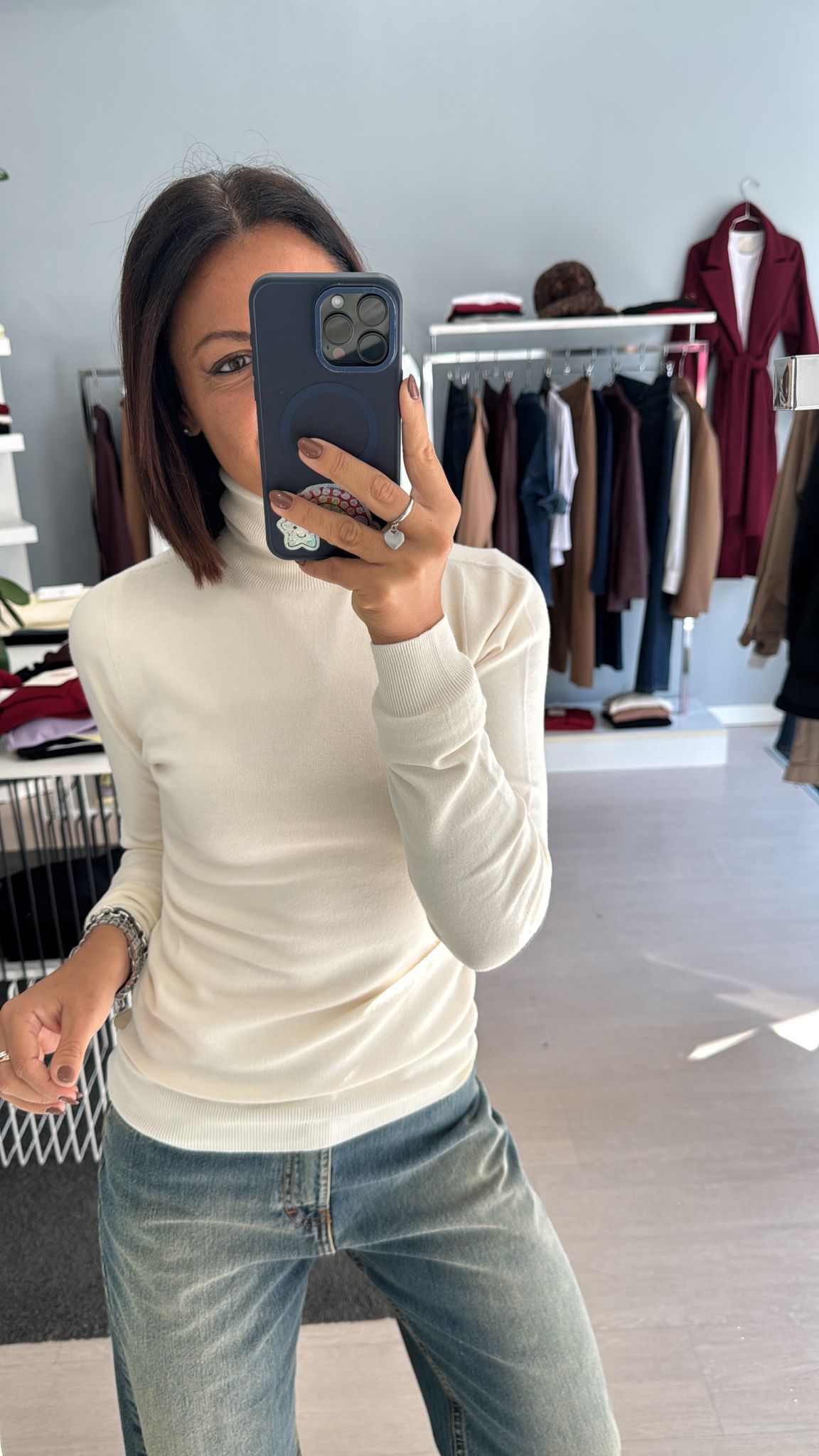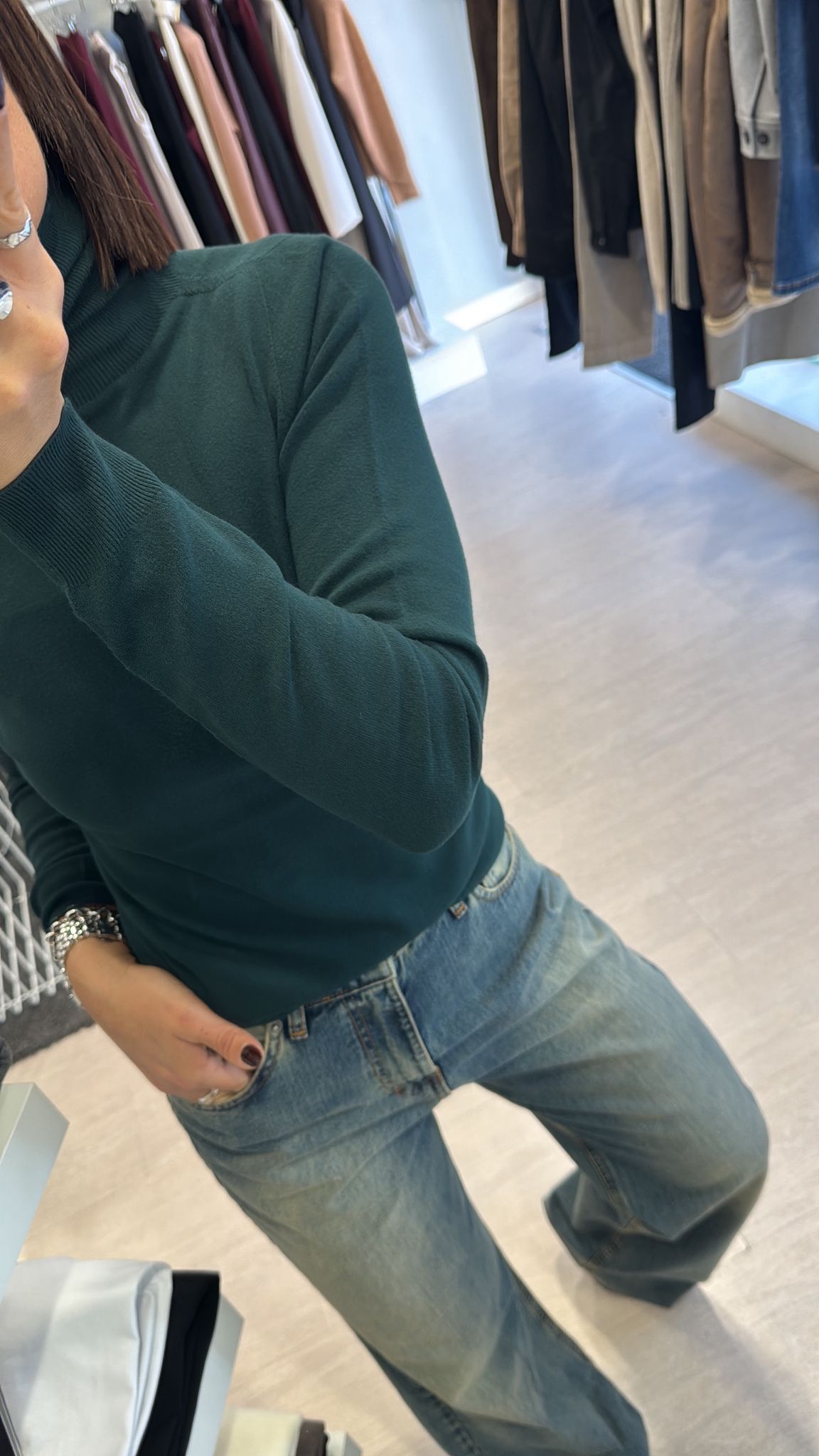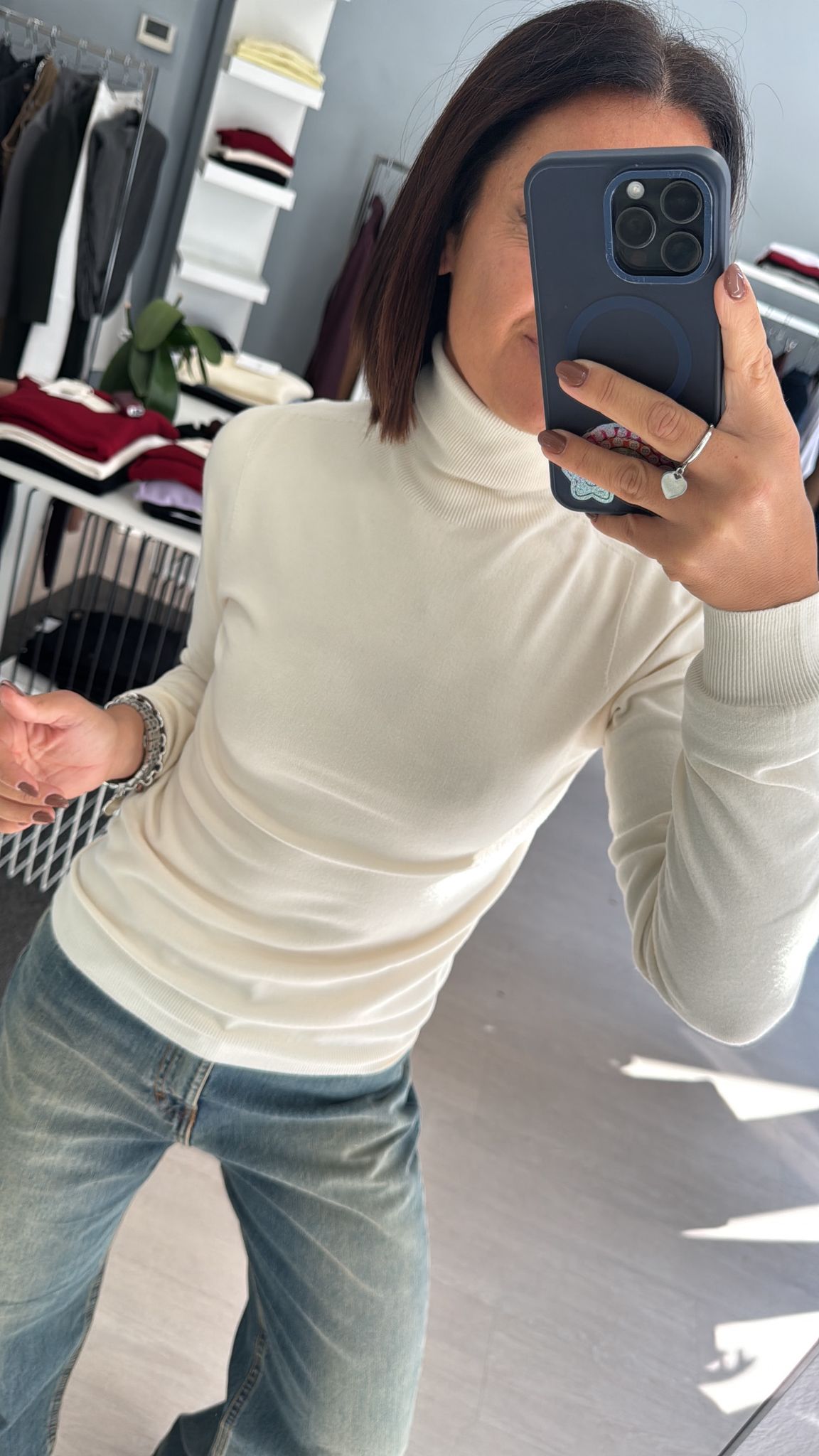 Dolcevita rasato modello basico continuativo, sfiancato ma non stretto, lunghezza regolare