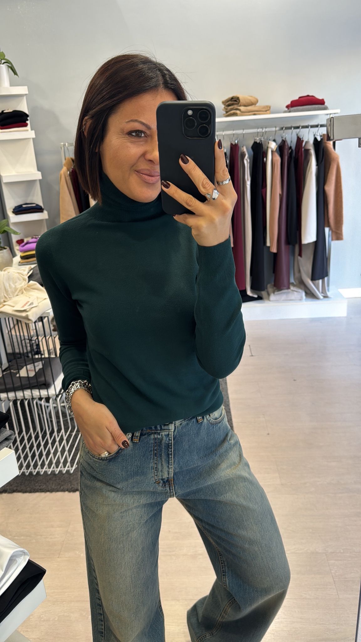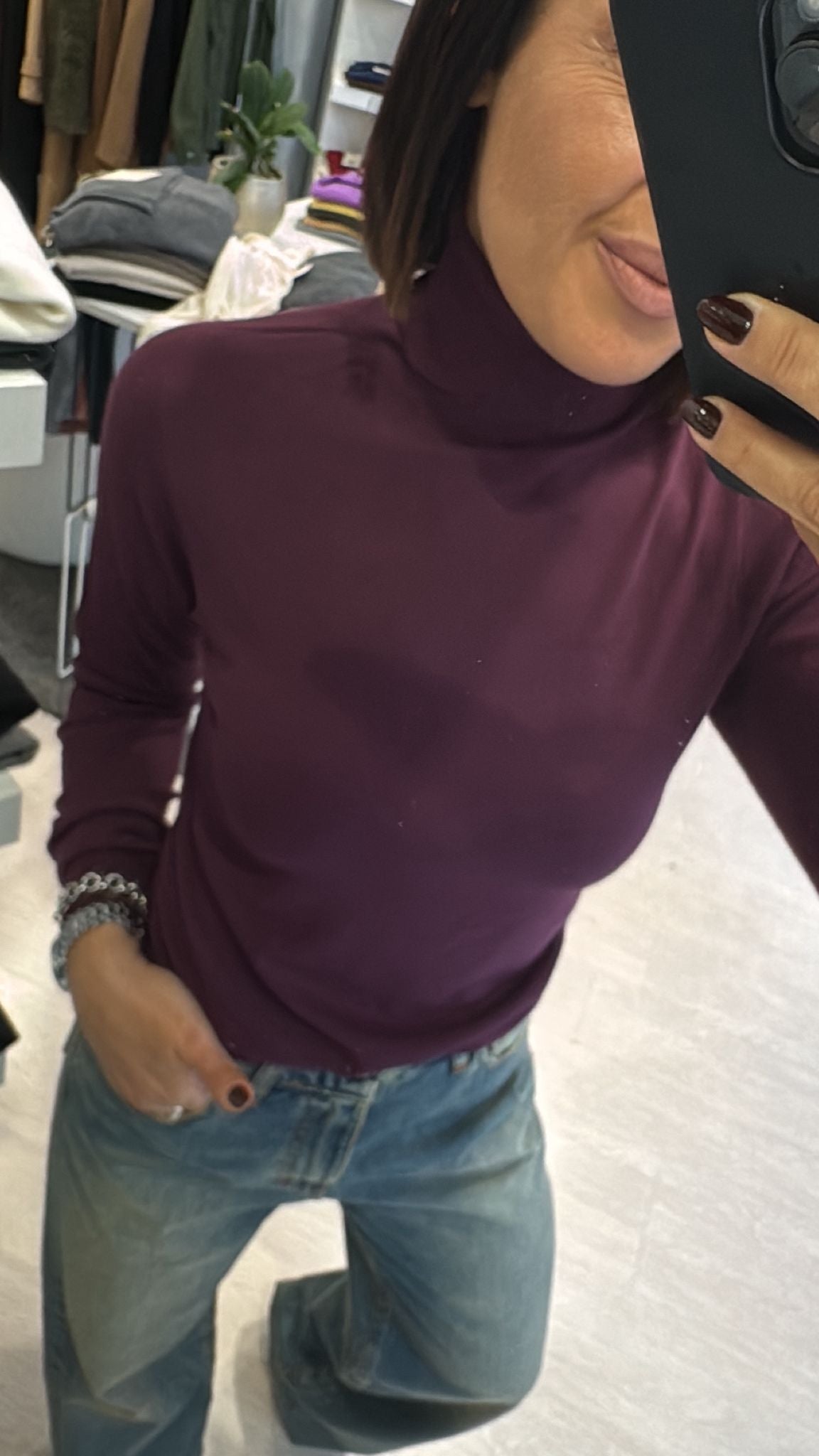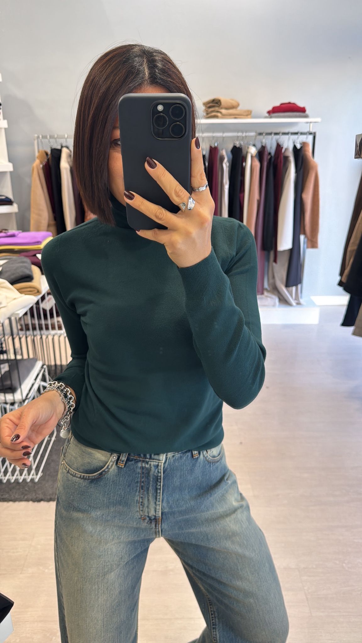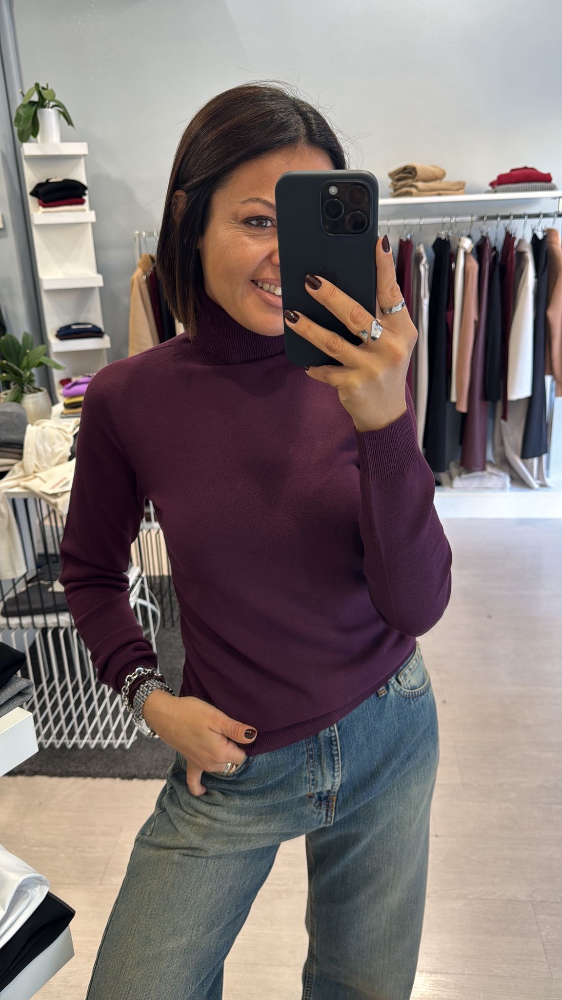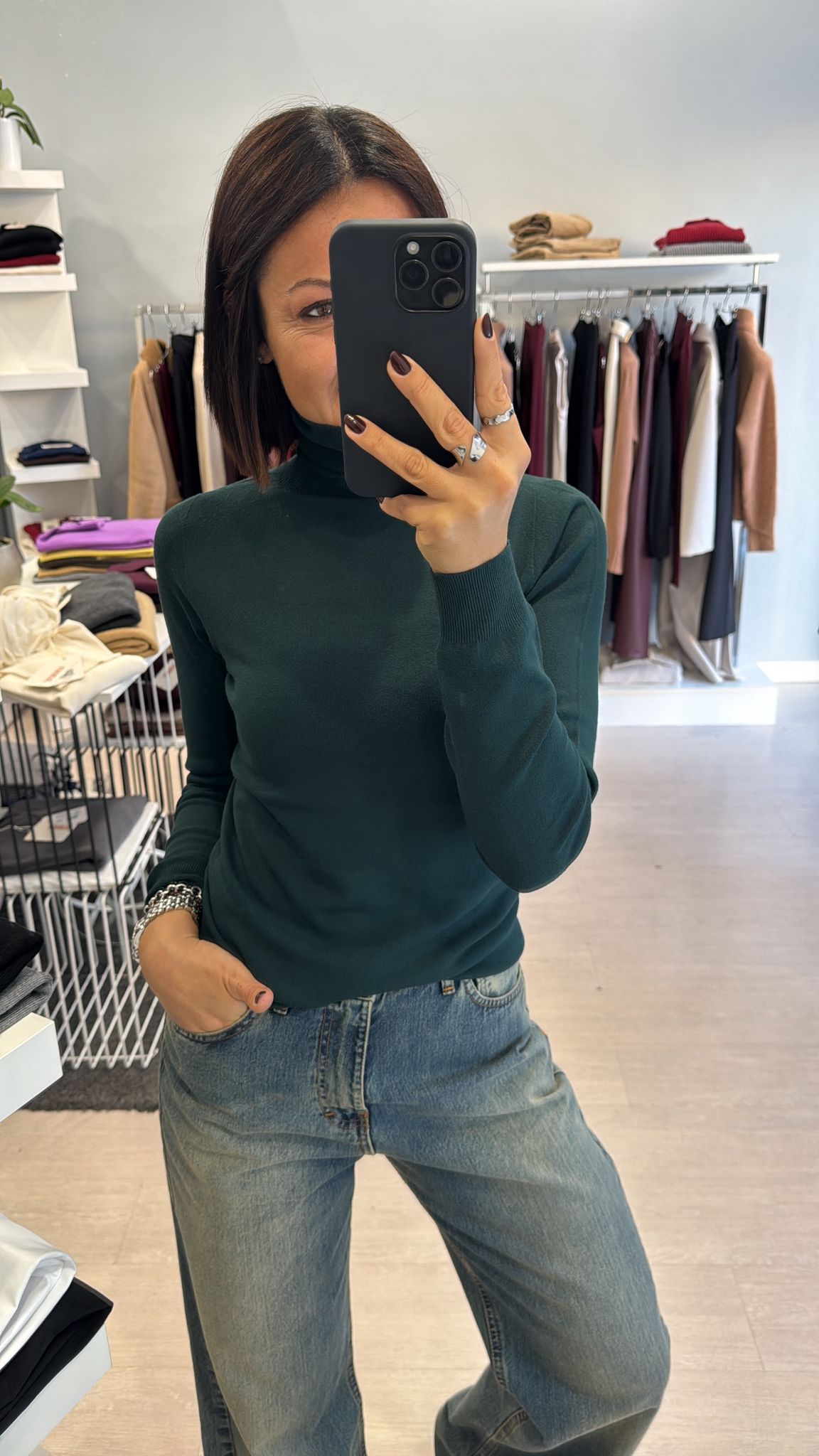 Dolcevita rasato modello basico continuativo, sfiancato ma non stretto, lunghezza regolare vestibilità regolare taglia unica colore: bianco-nero-melanzana-cioccolato-verde bosco-grigio 63%VI 37%PA...