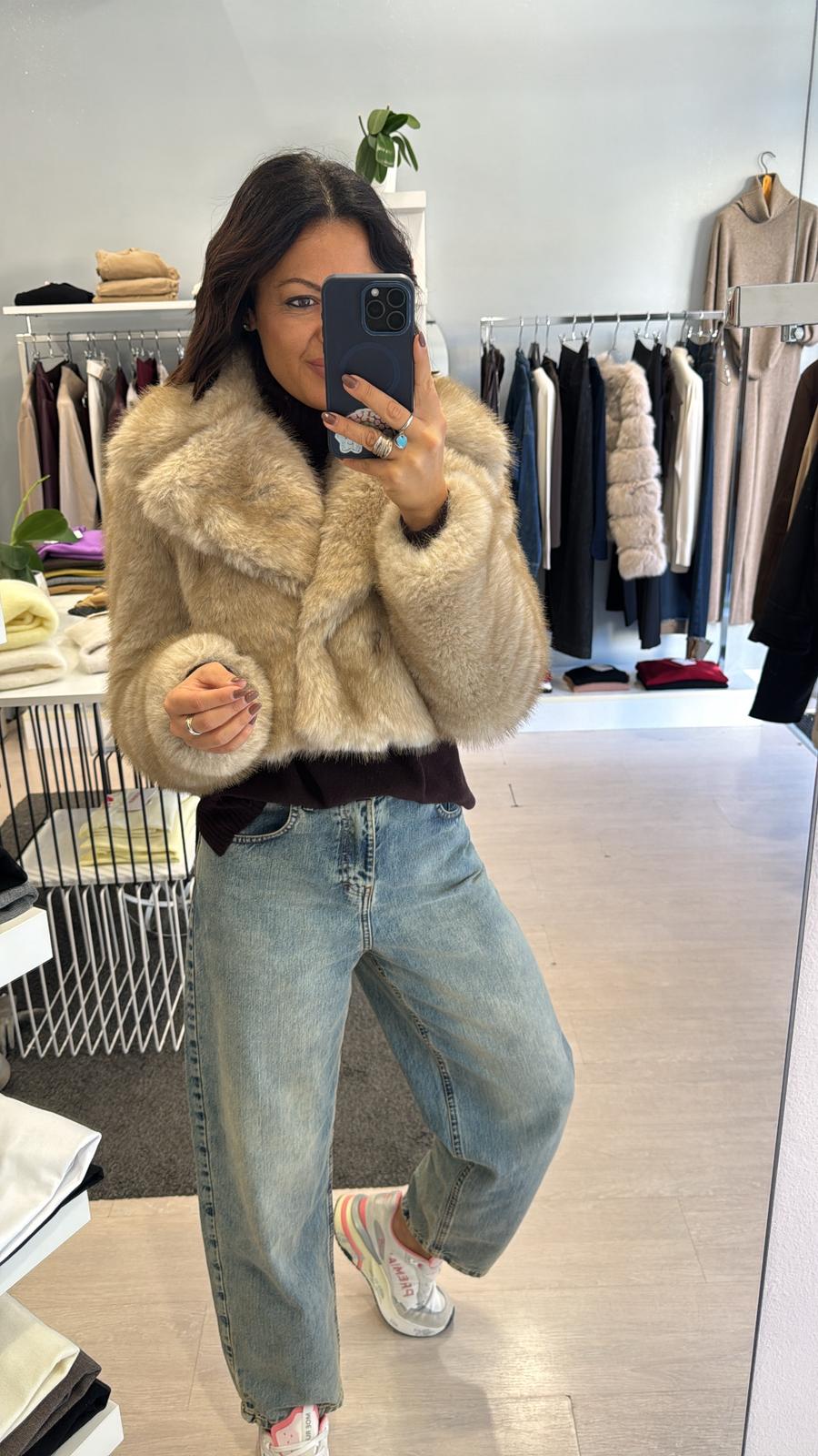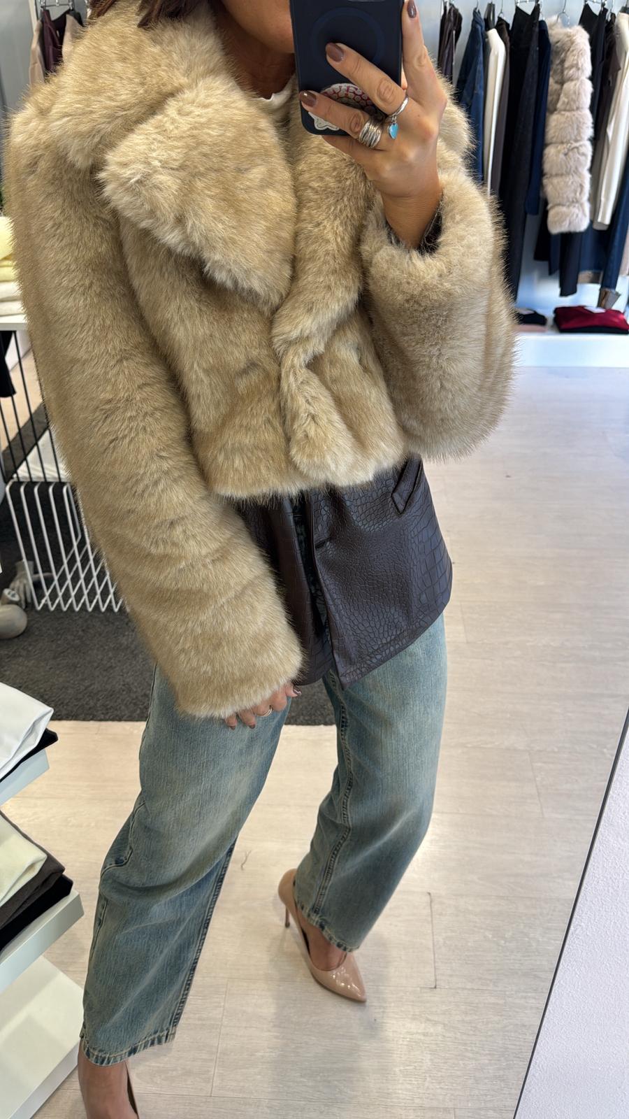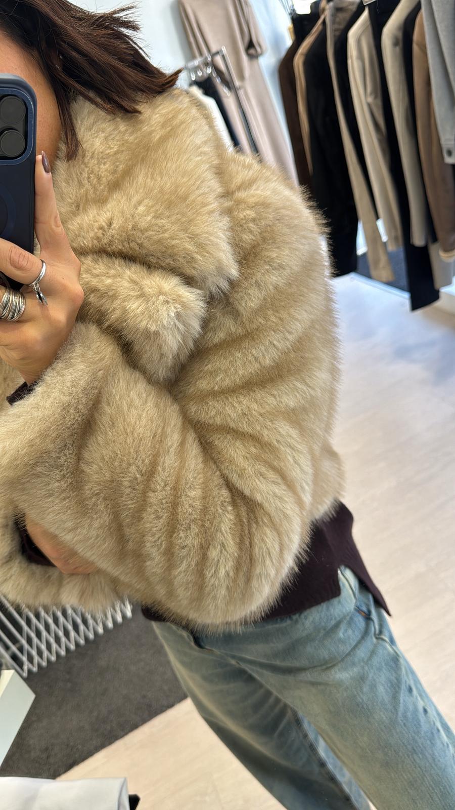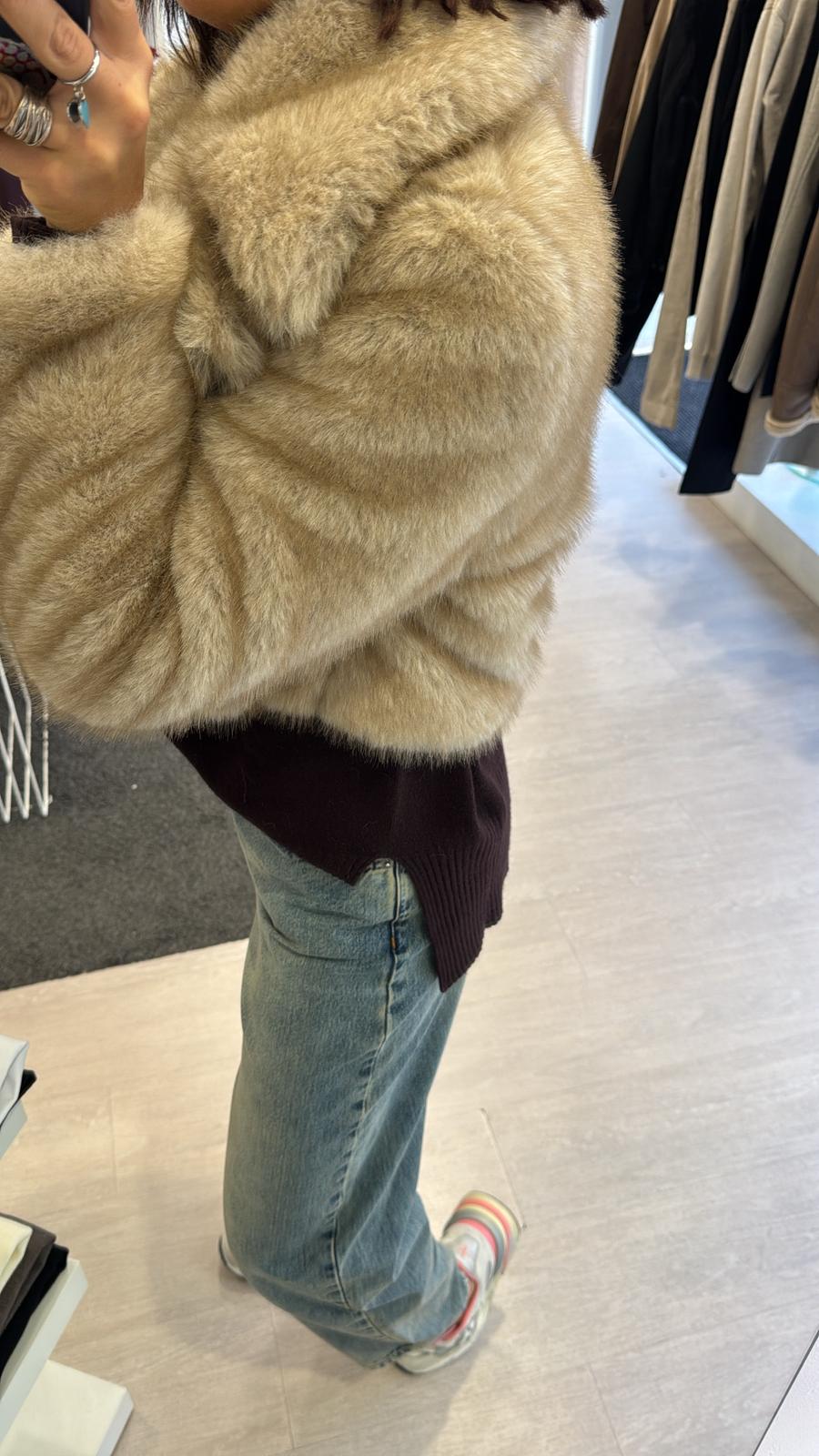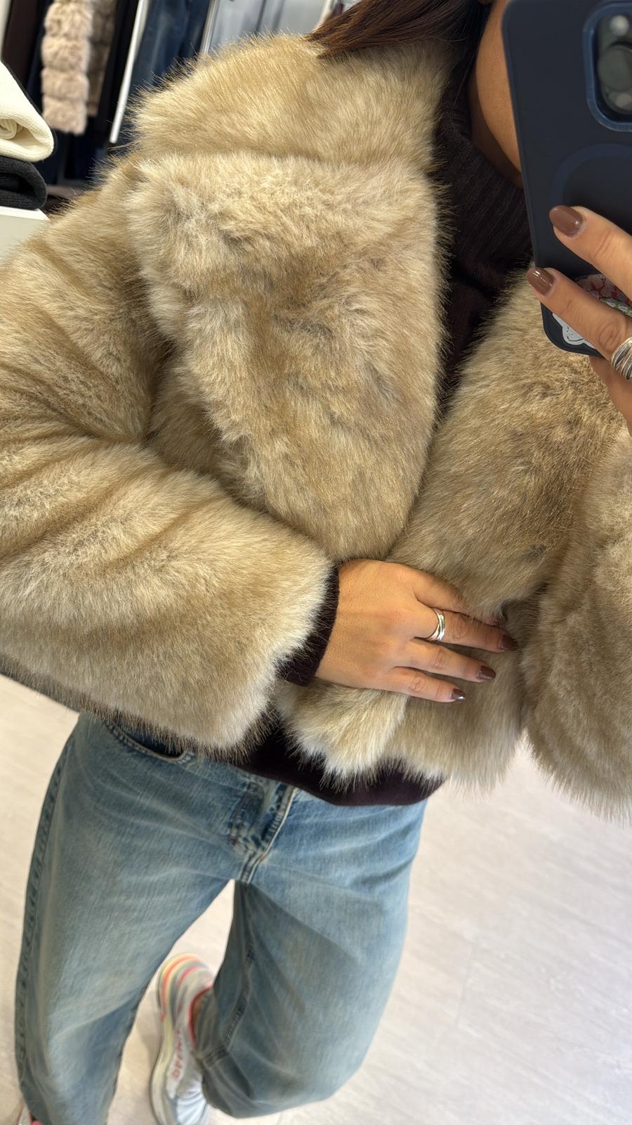 Ecopelliccia lunghezza in vita, collo voluminoso, chiusura a clip frontale, foderata internamente vestibilità regolare IN FOTO INDOSSO LA TAGLIA S...