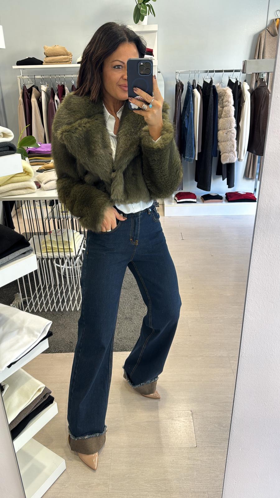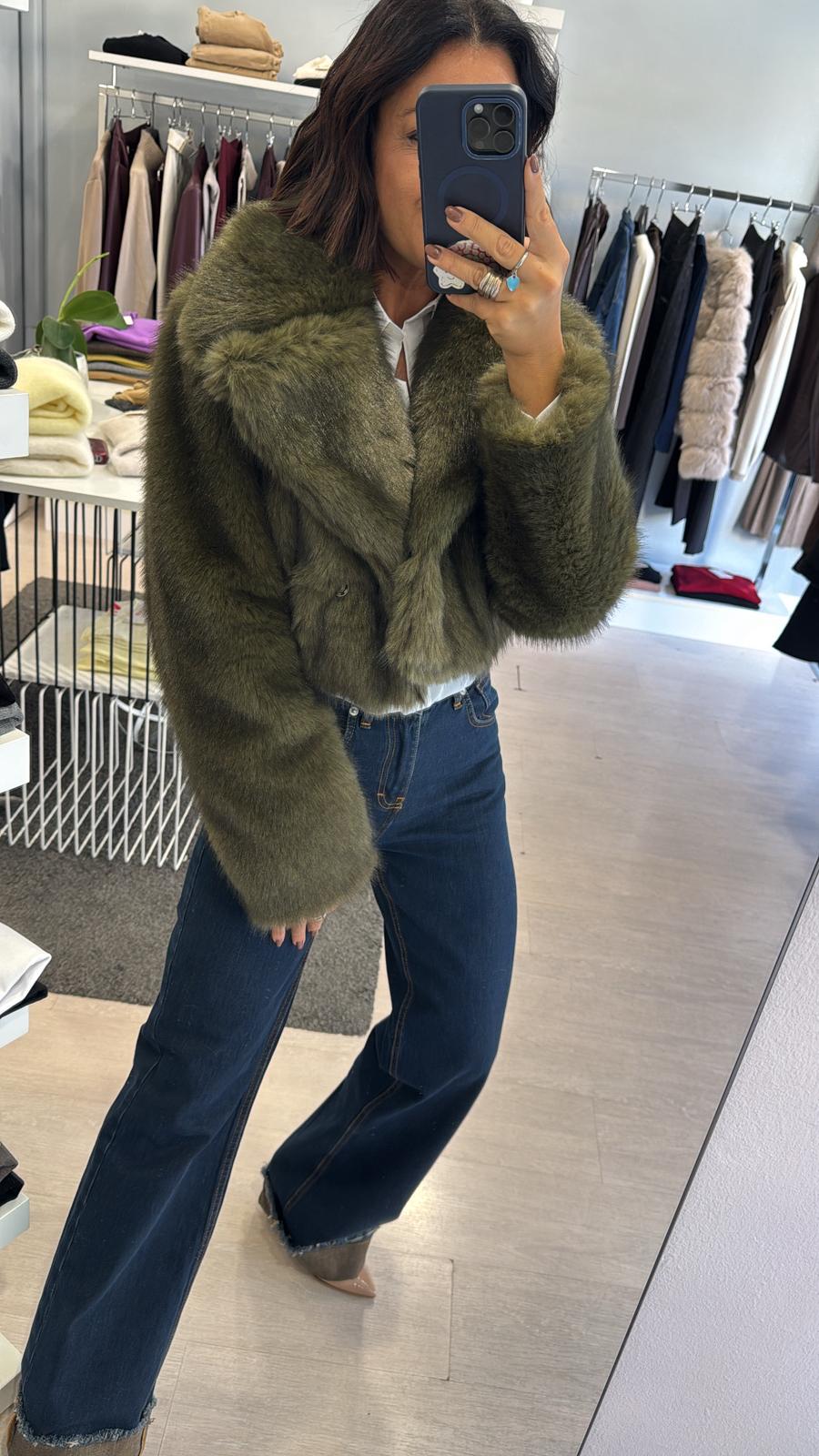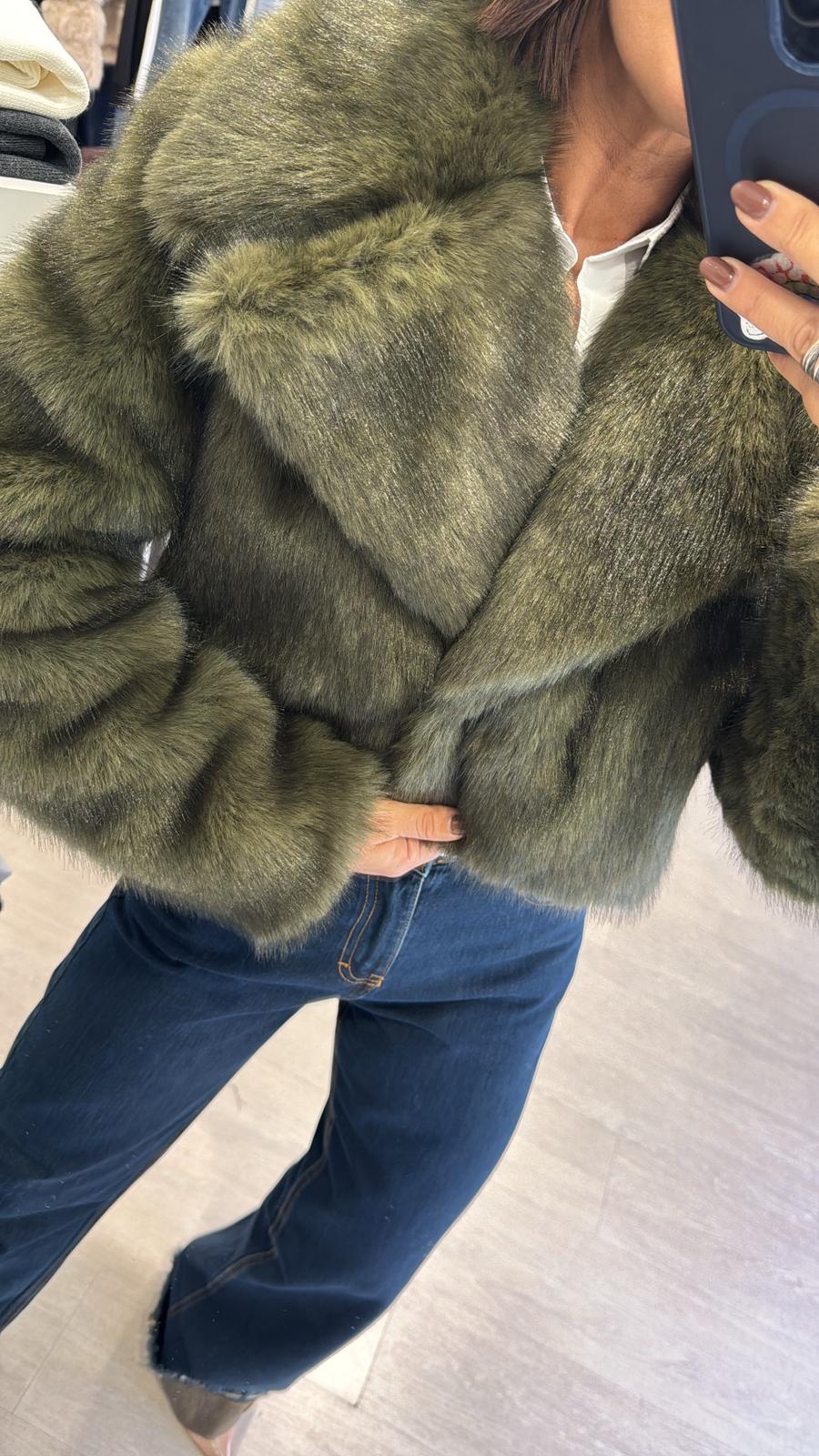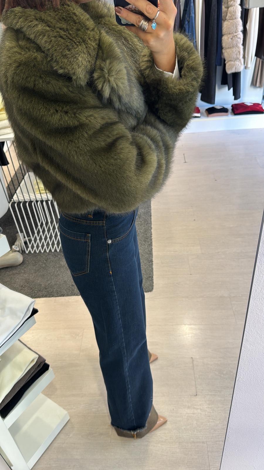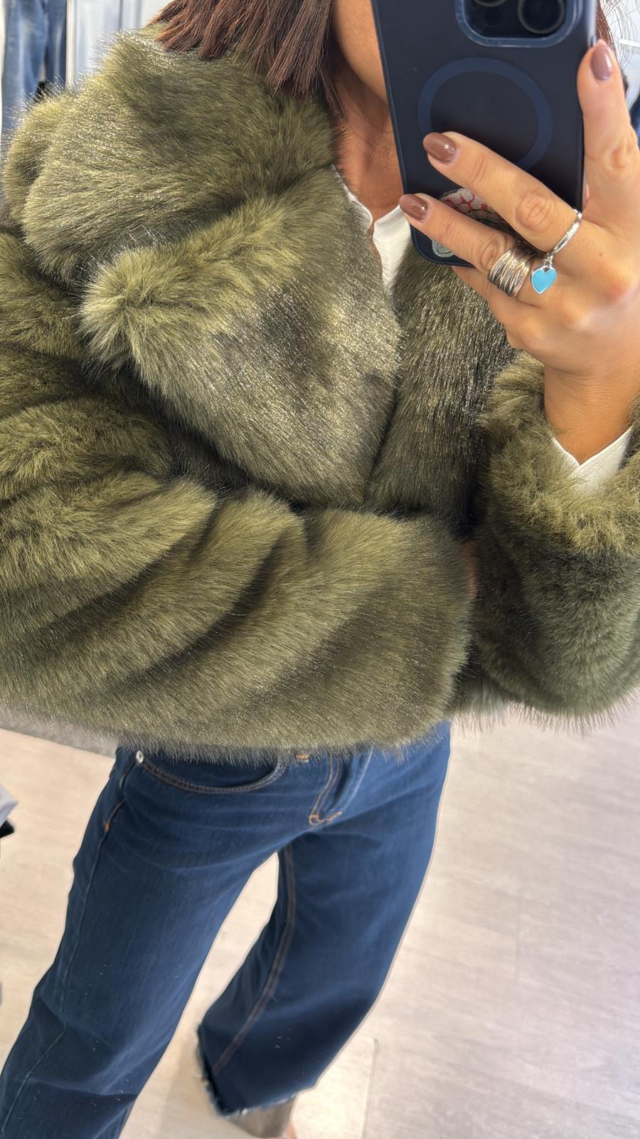 Ecopelliccia lunghezza in vita, collo voluminoso, chiusura a clip frontale, foderata internamente vestibilità regolare IN FOTO INDOSSO LA TAGLIA S...