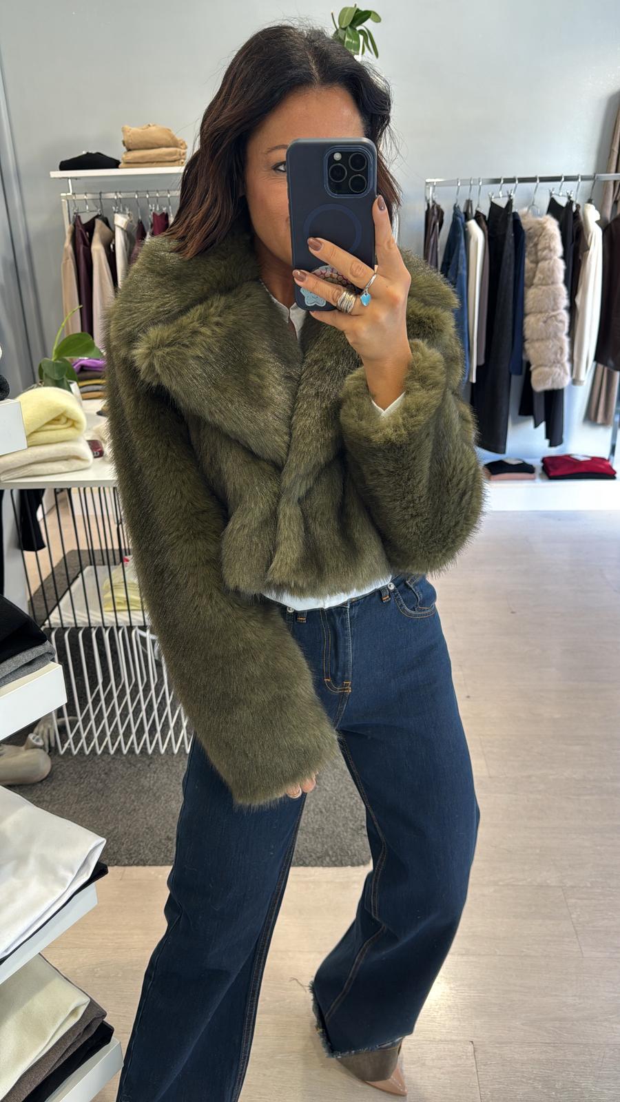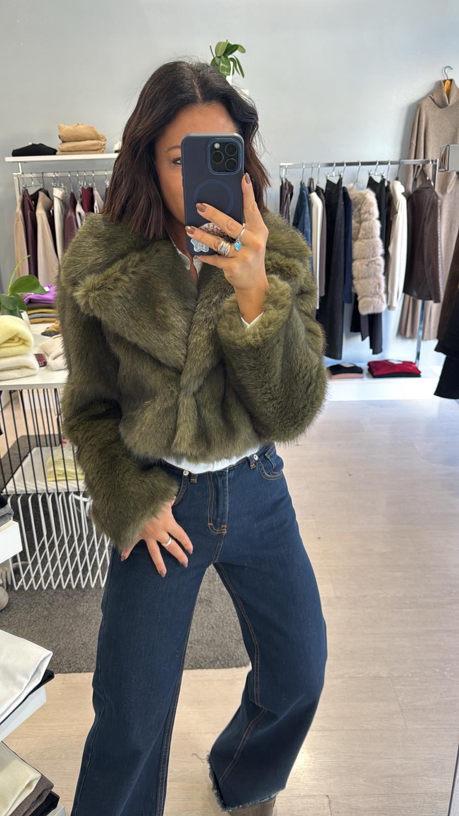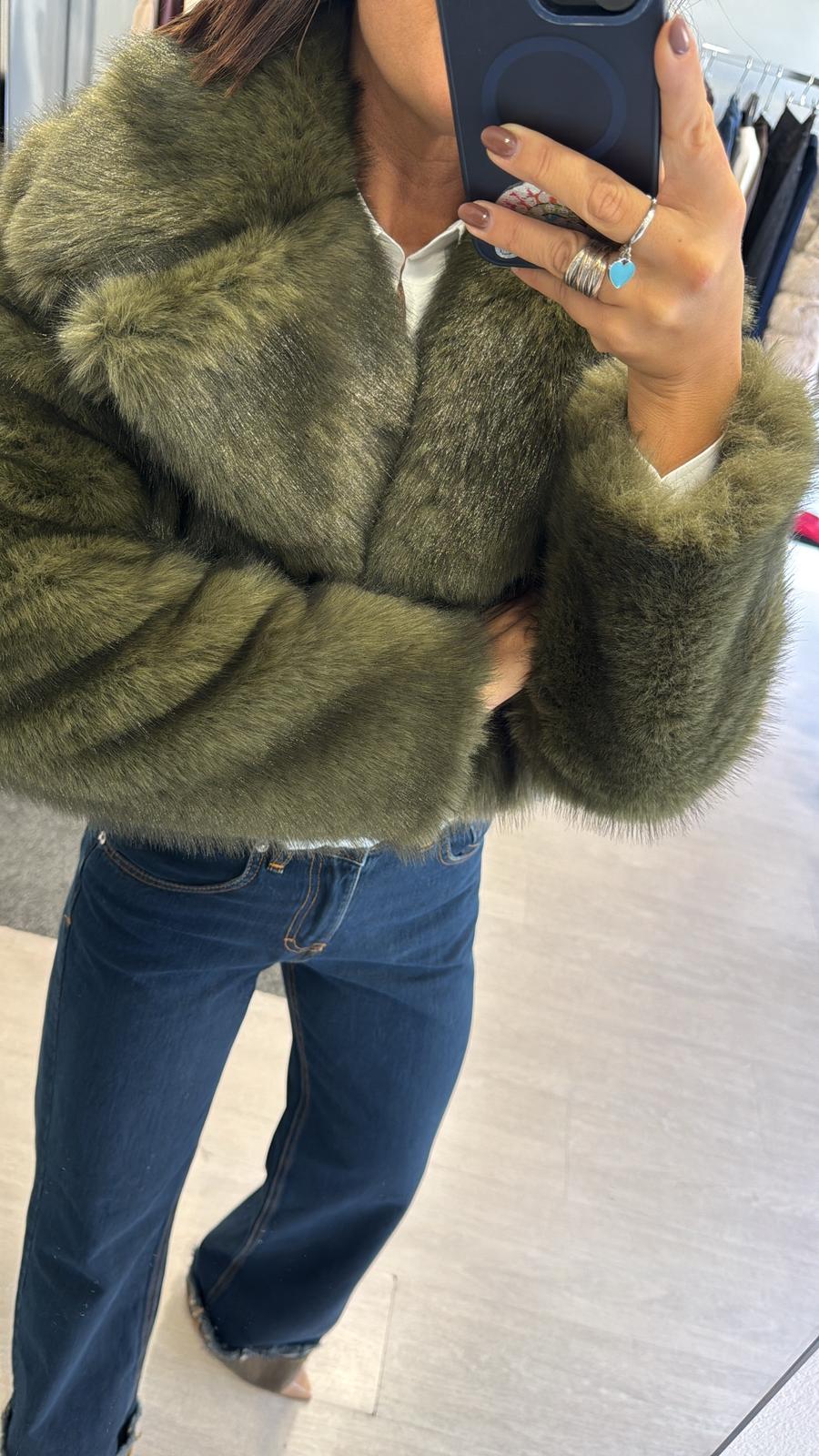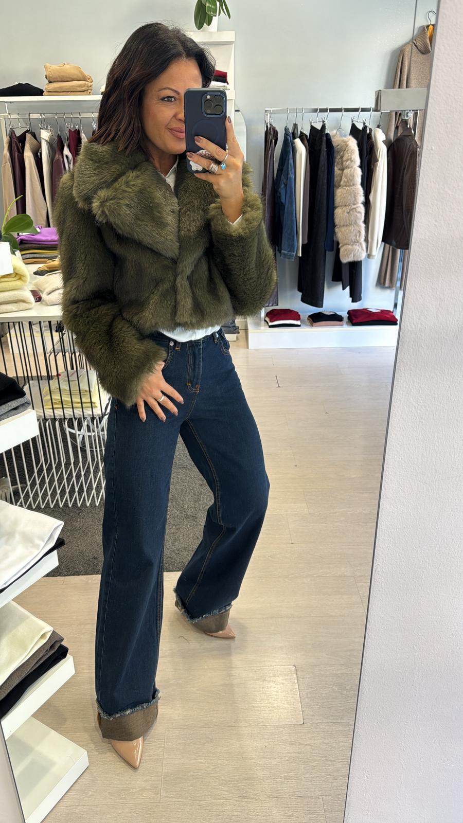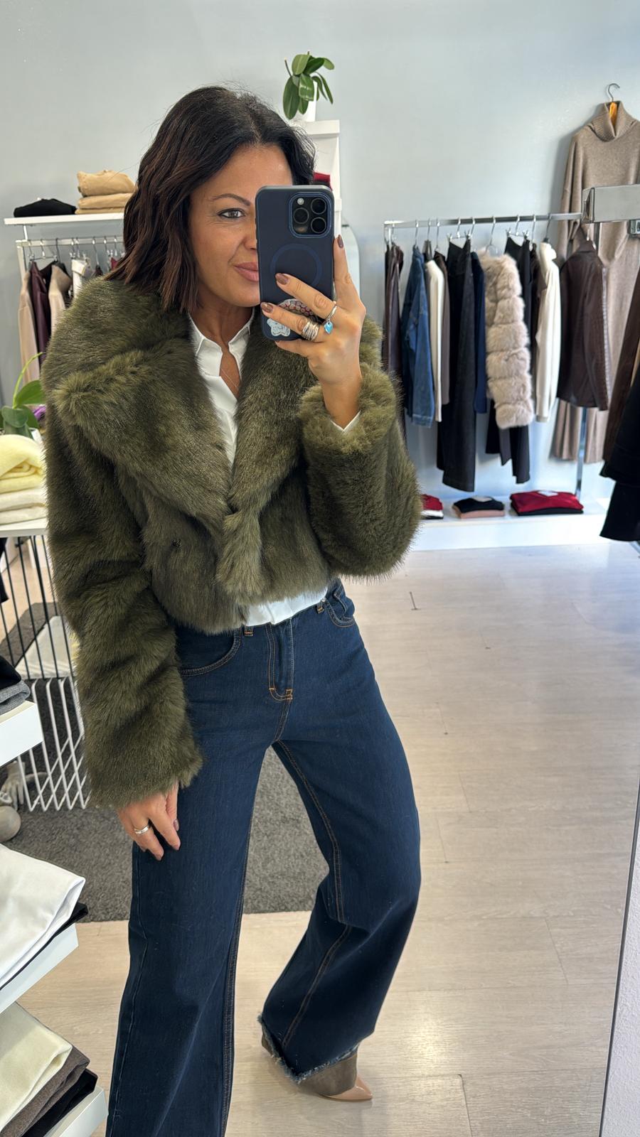 Ecopelliccia lunghezza in vita, collo voluminoso, chiusura a clip frontale, foderata internamente vestibilità regolare IN FOTO INDOSSO LA TAGLIA S...