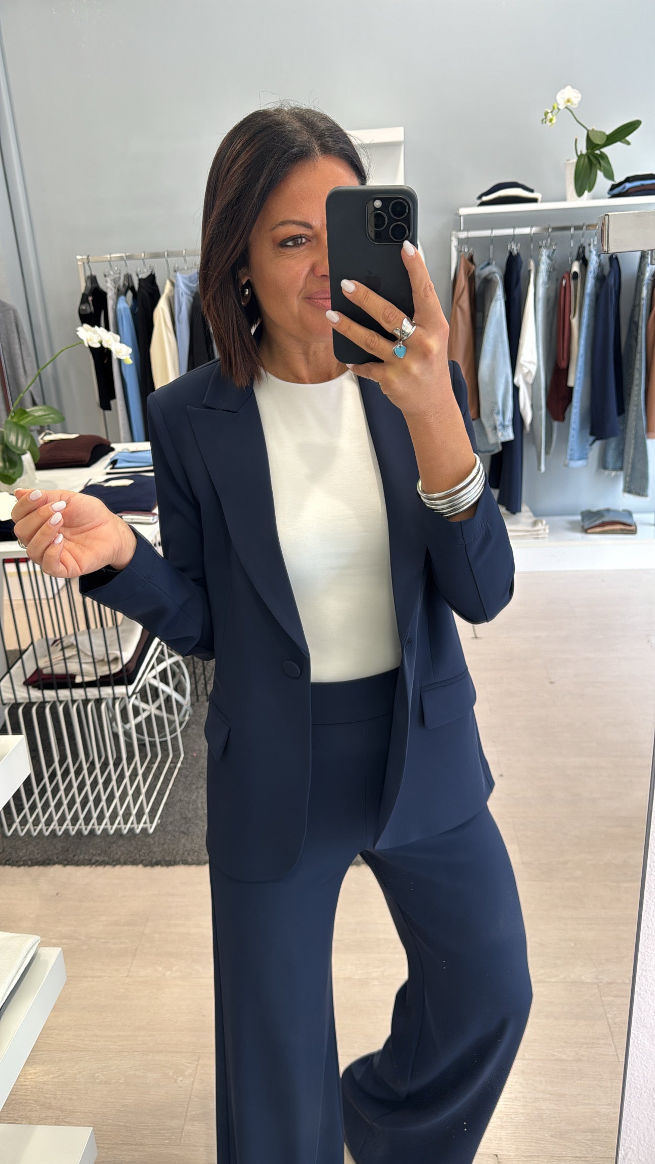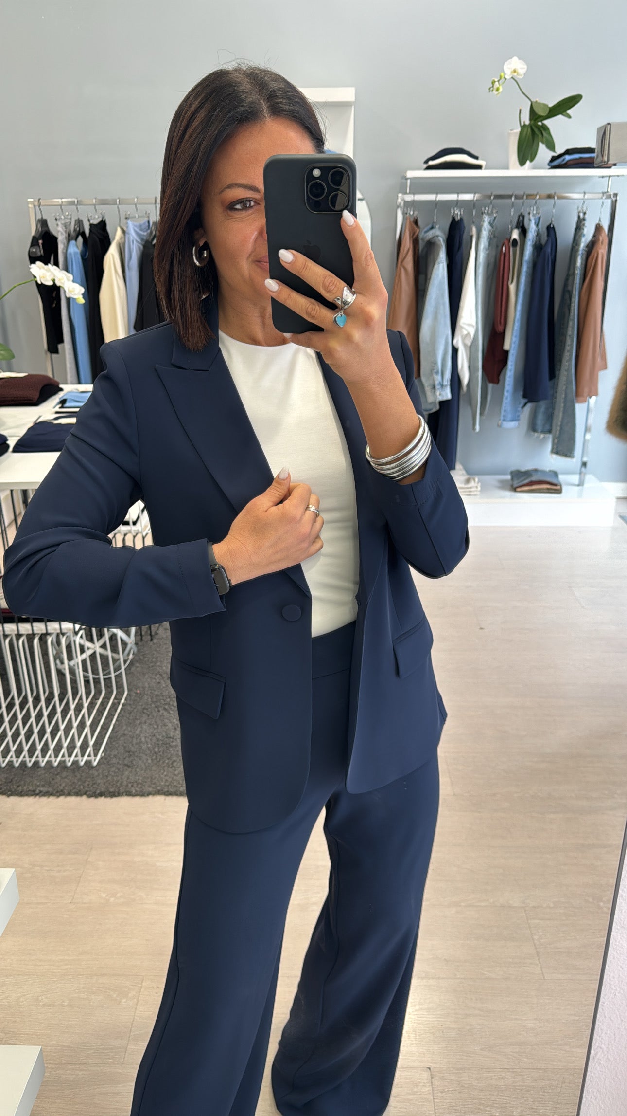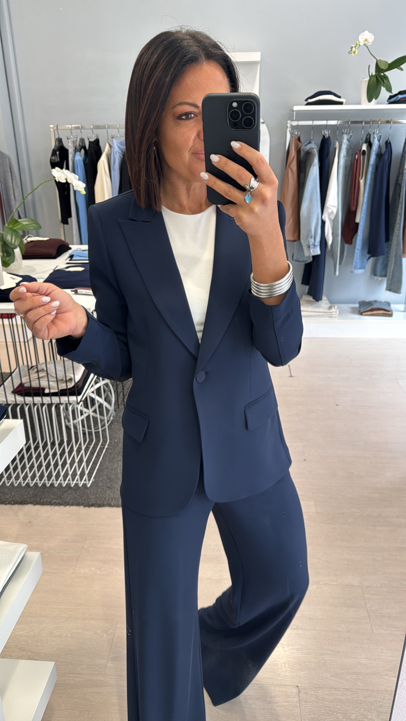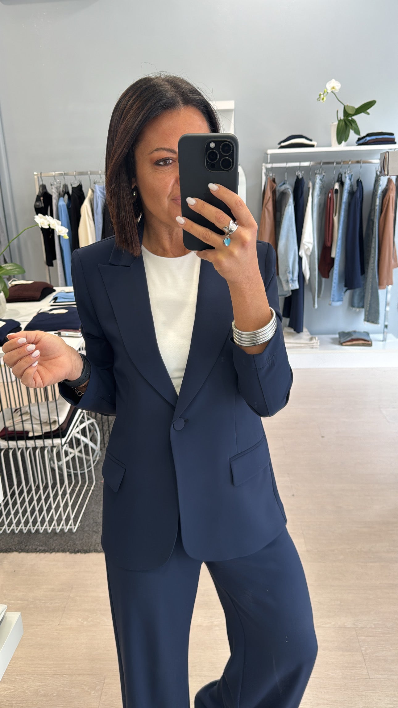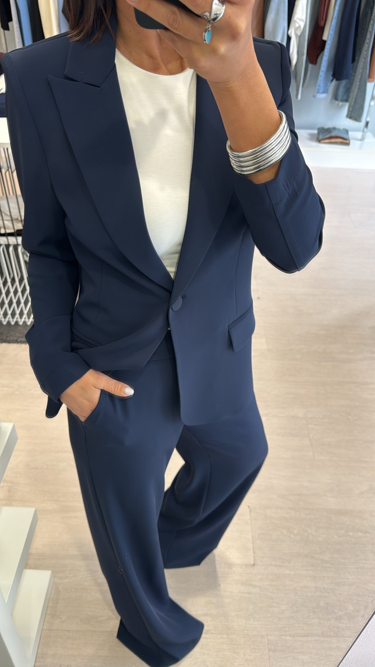 Giacca Kontatto in tessuto fluido, modello non foderato, lunghezza al fianco, chiusura ad un bottone, spalla leggermente imbottita, modello effetto dritto