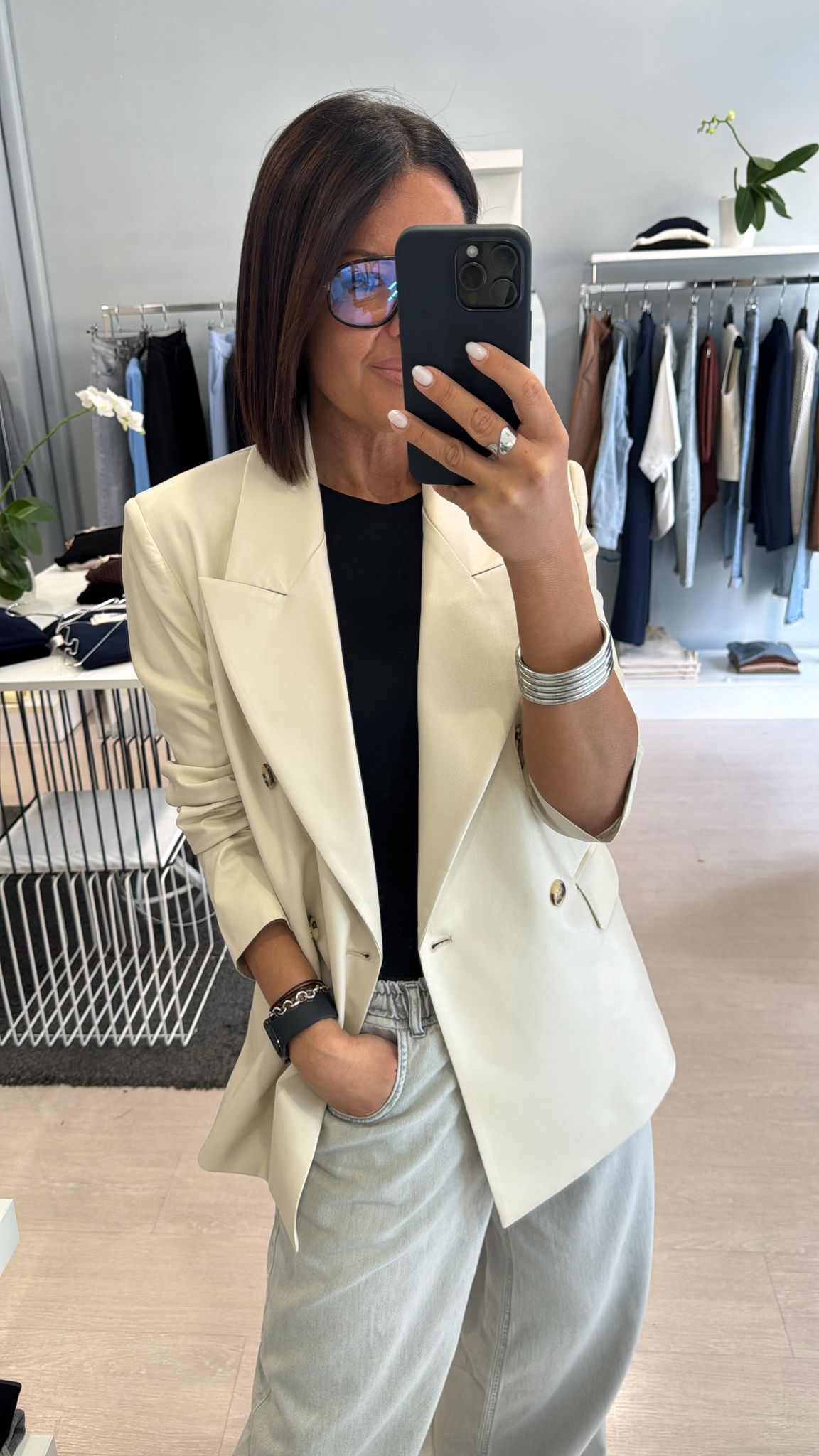 Giacca ecopelle avorio
