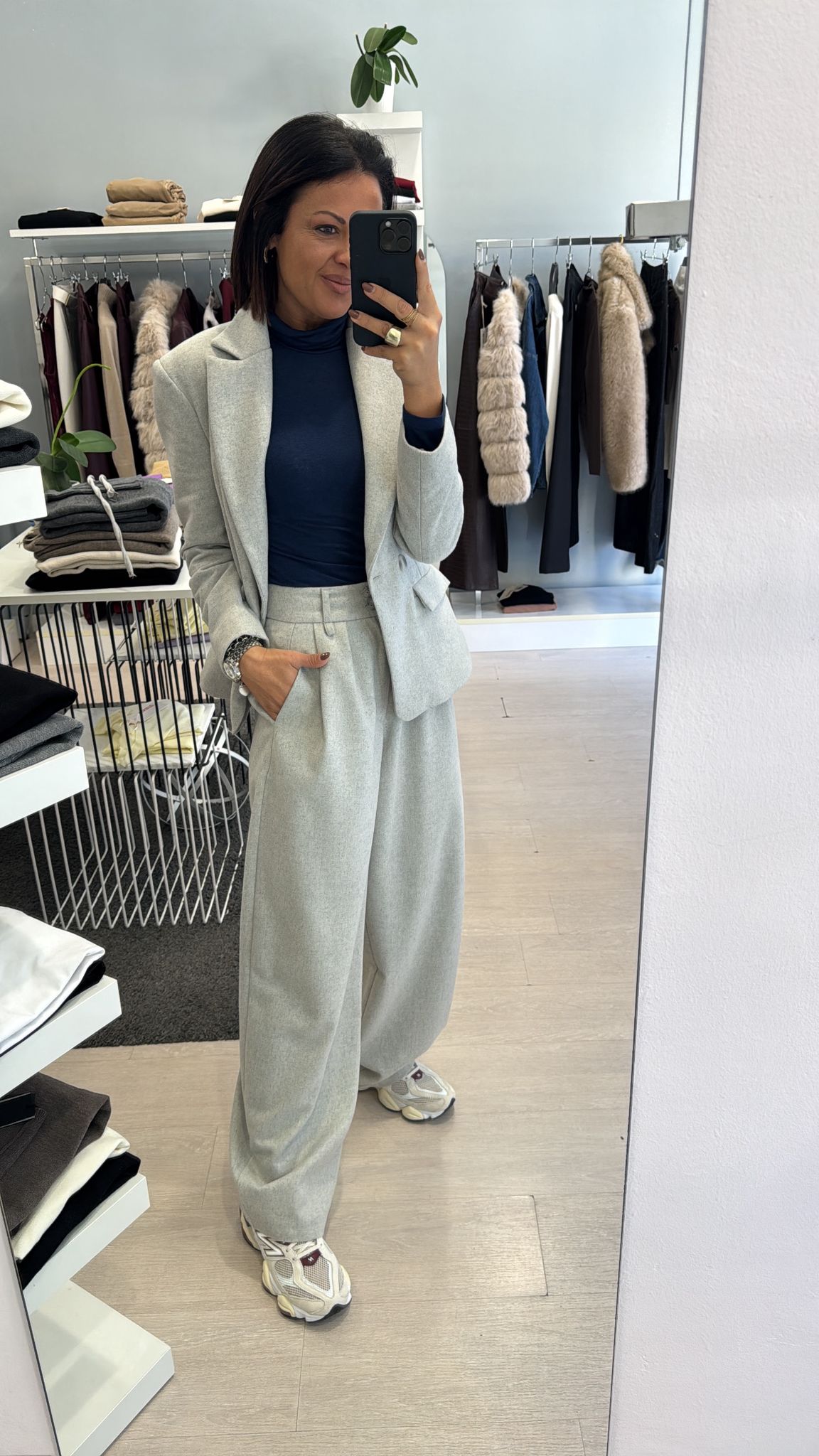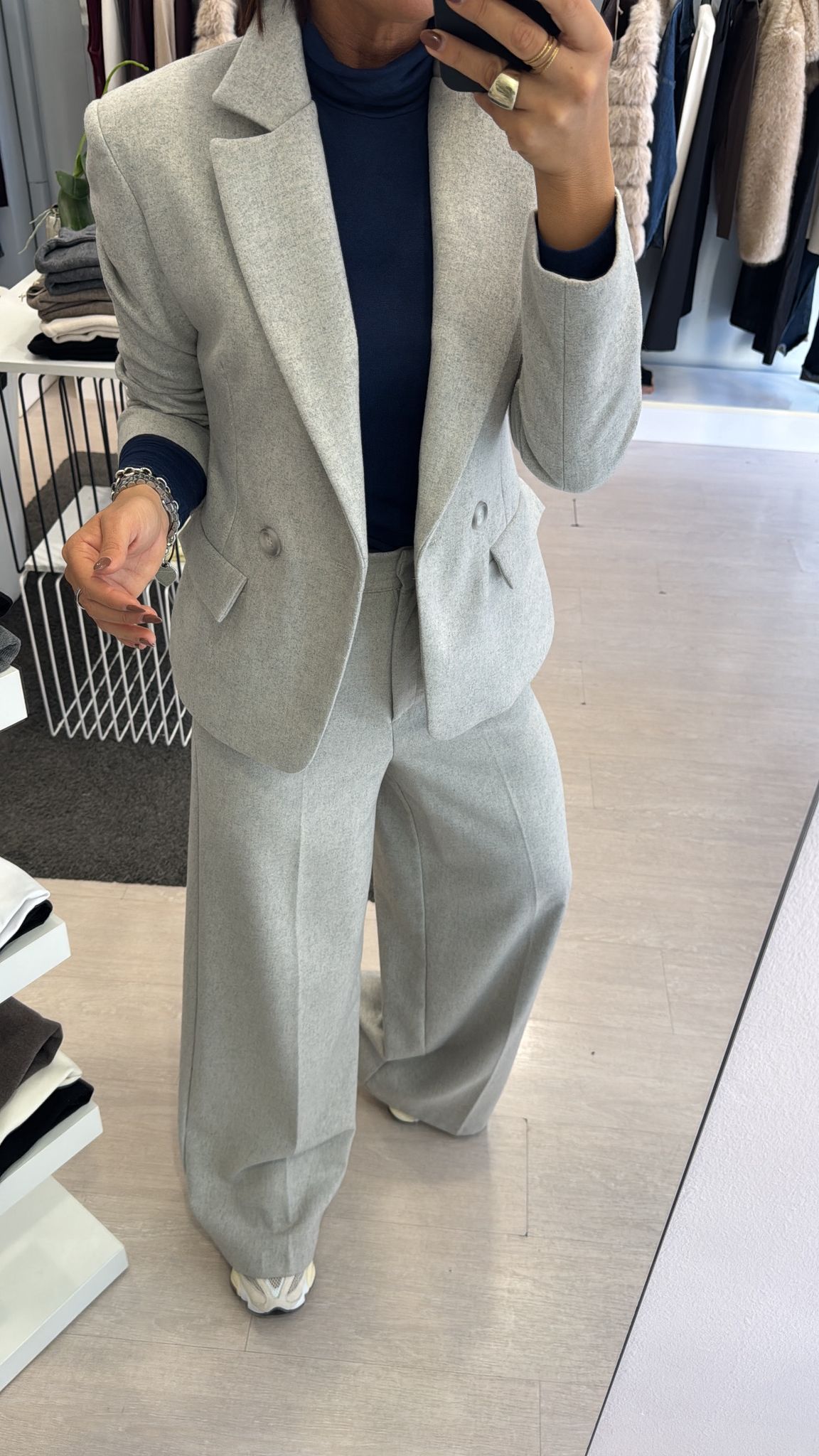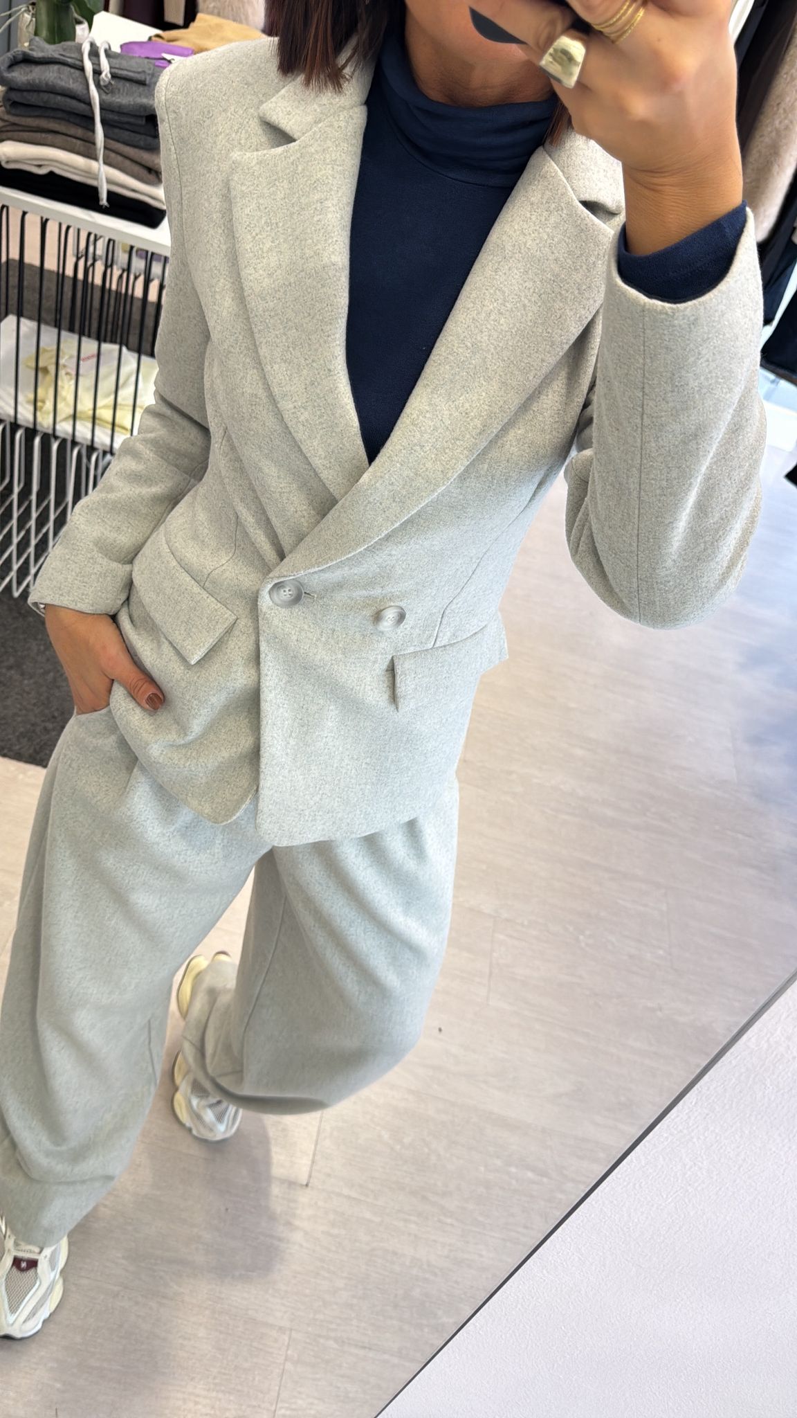 FA COMPLETO CON IL PANTALONE WIDE LEG E IL PANTALONE BALLOON GRIGIO MELANGE