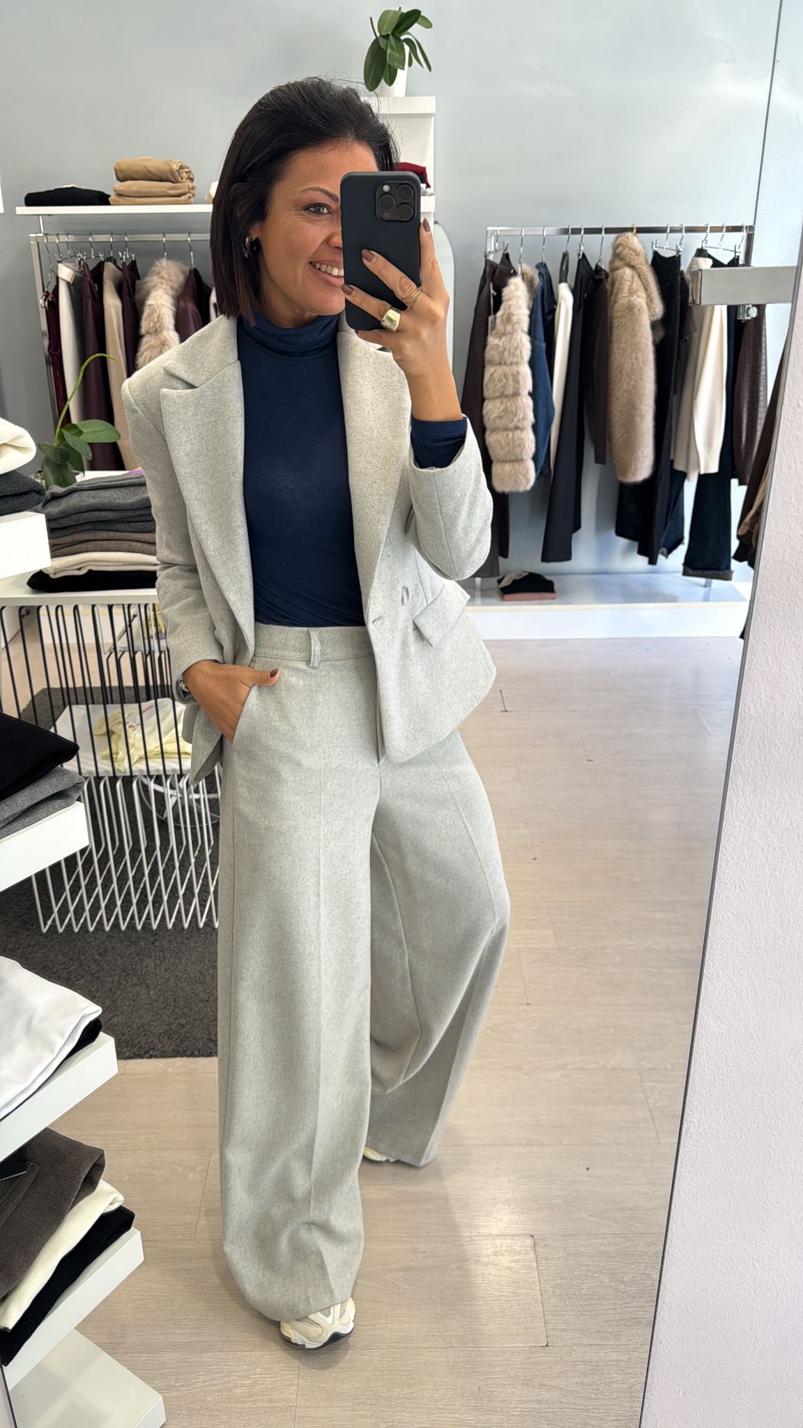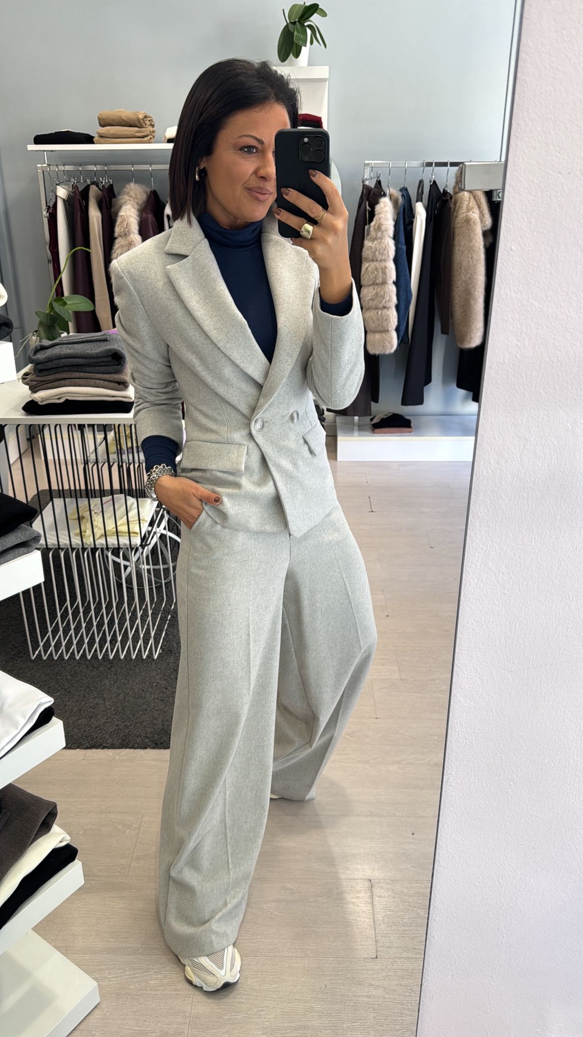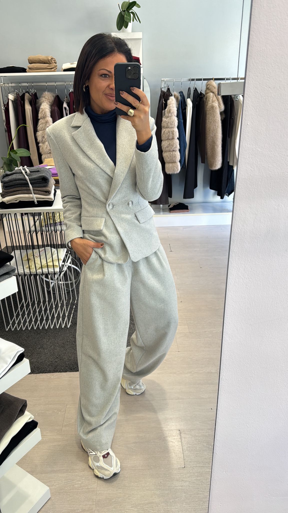 FA COMPLETO CON IL PANTALONE WIDE LEG E IL PANTALONE BALLOON GRIGIO MELANGE