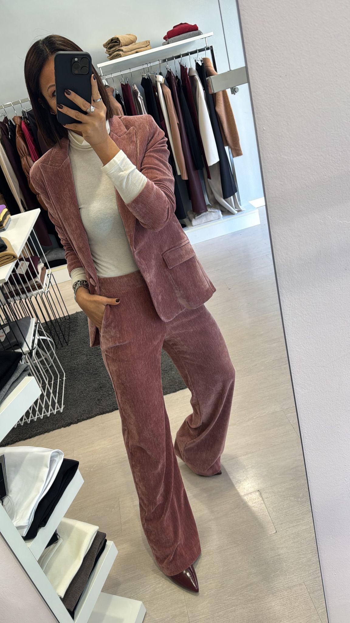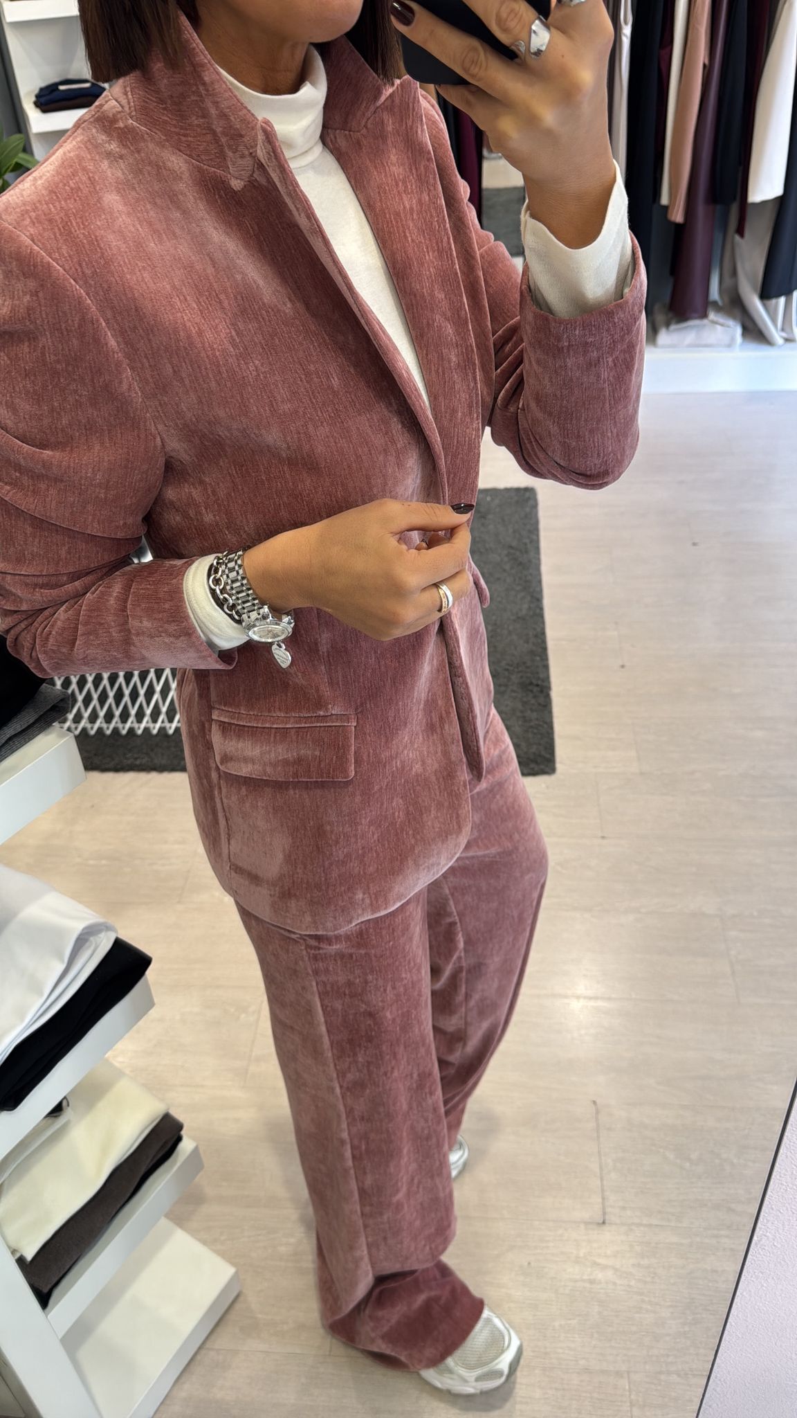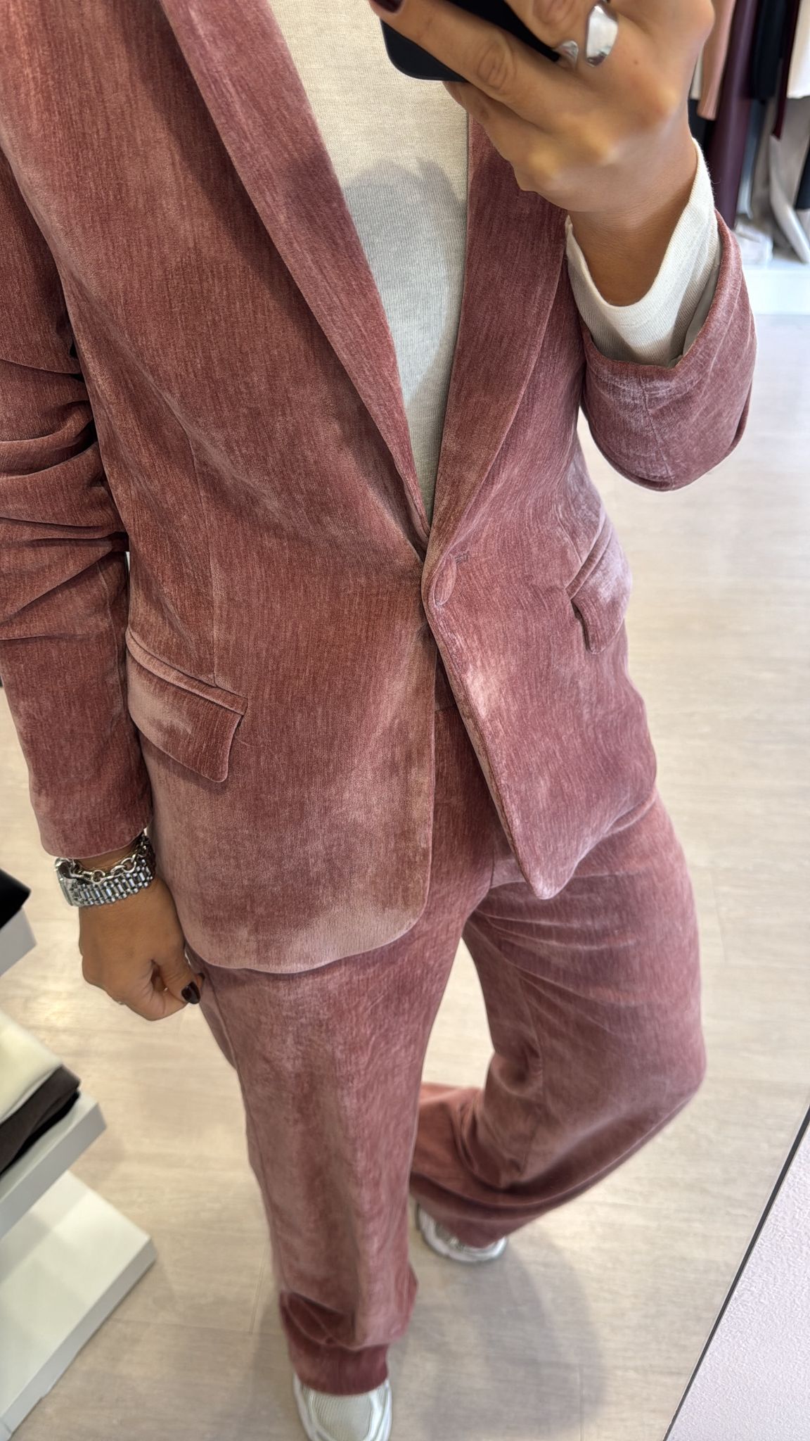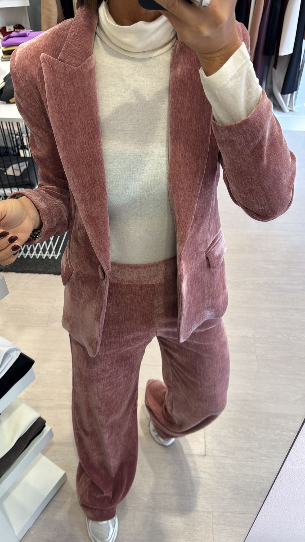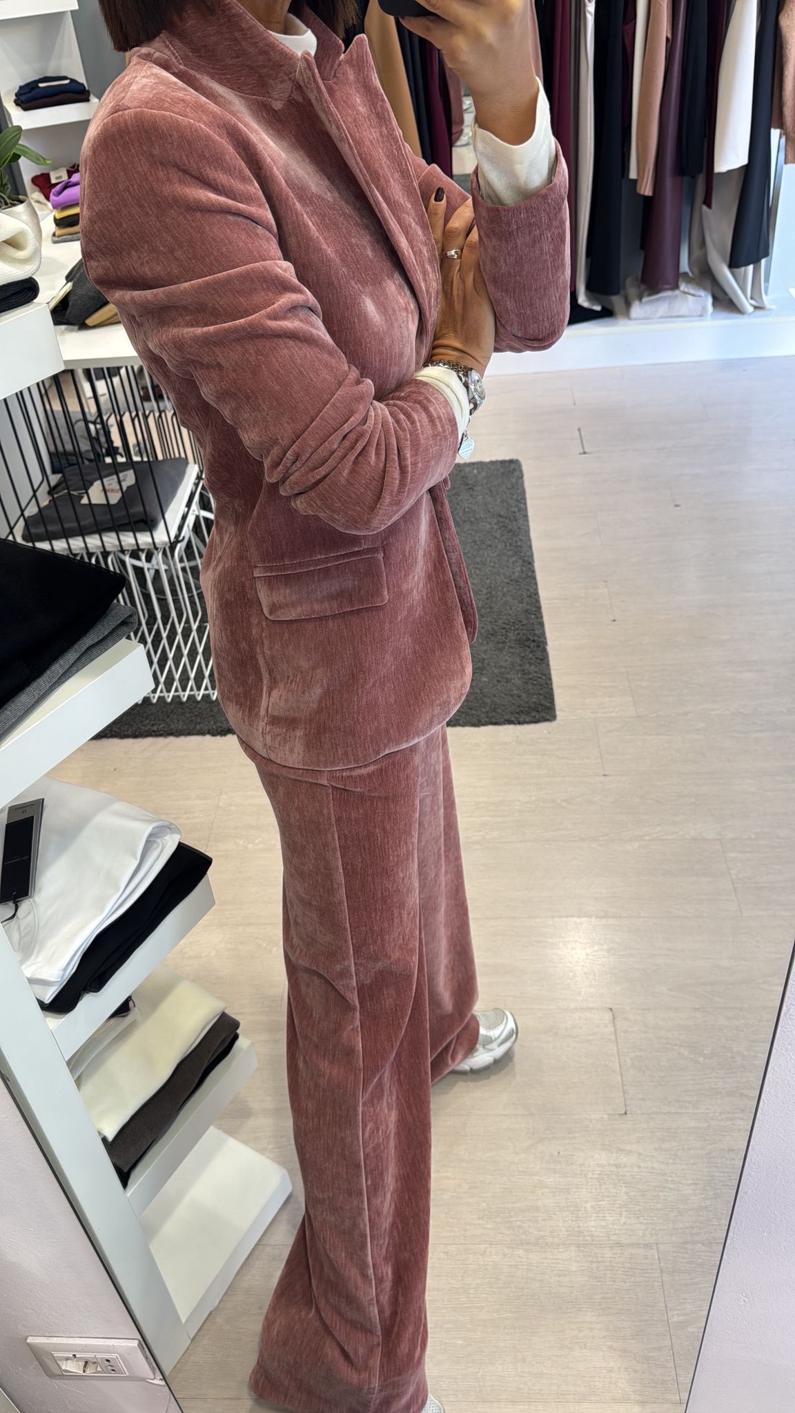 Giacca in velluto liscio, modello leggermente fittato, lunghezza al fianco, foderata internamente, chiusura ad un bottone vestibilità regolare IN FOTO...