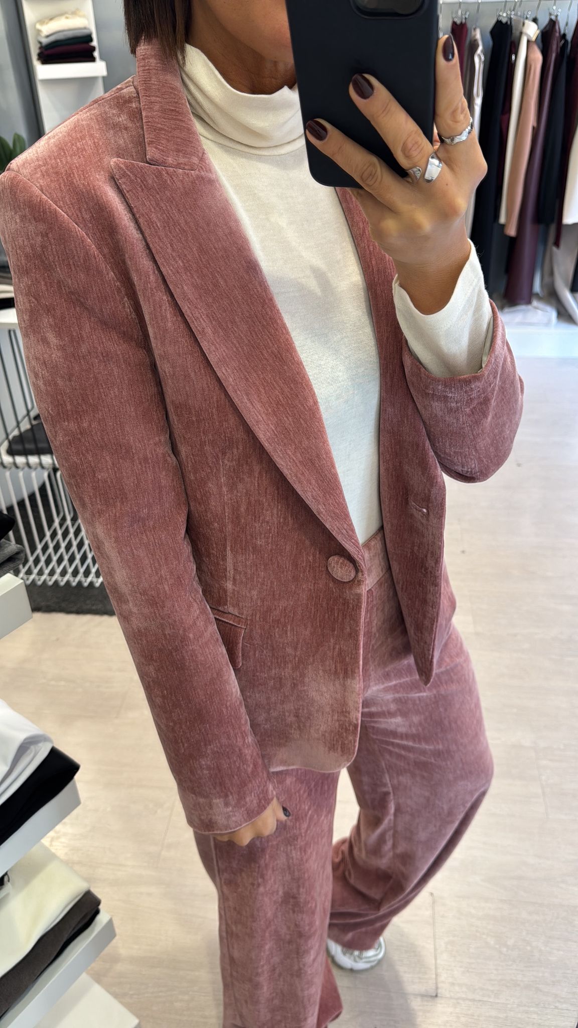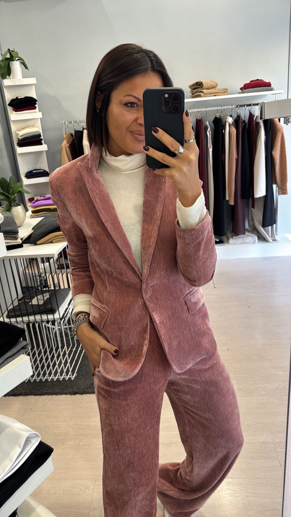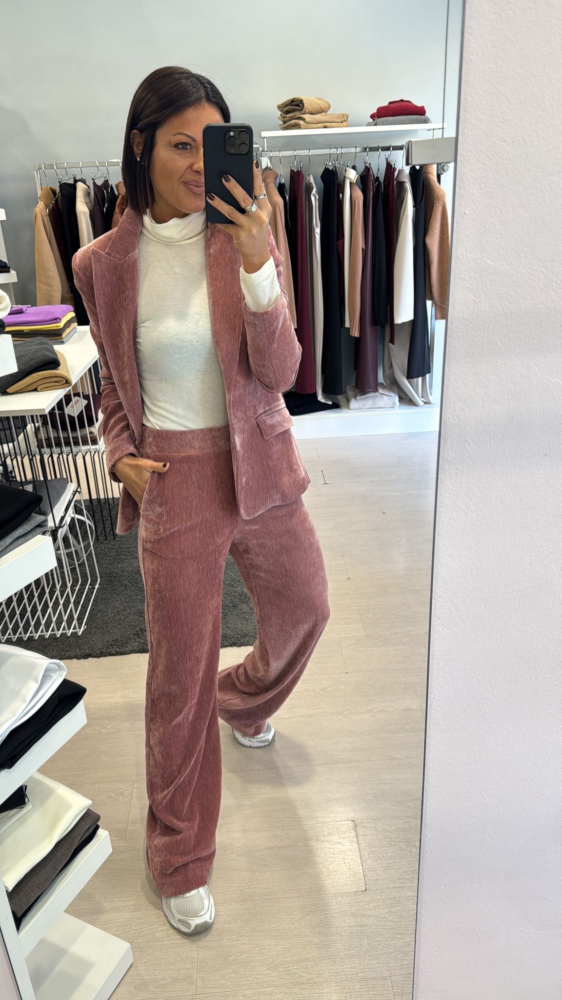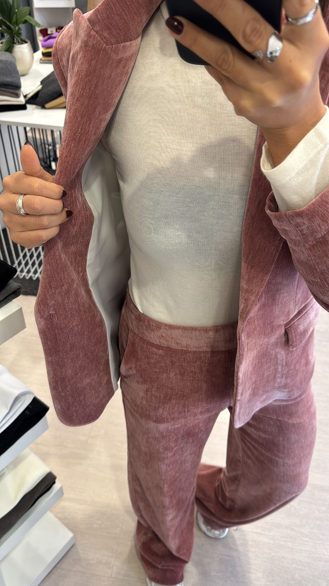 Giacca in velluto liscio, modello leggermente fittato, lunghezza al fianco, foderata internamente, chiusura ad un bottone vestibilità regolare IN FOTO...