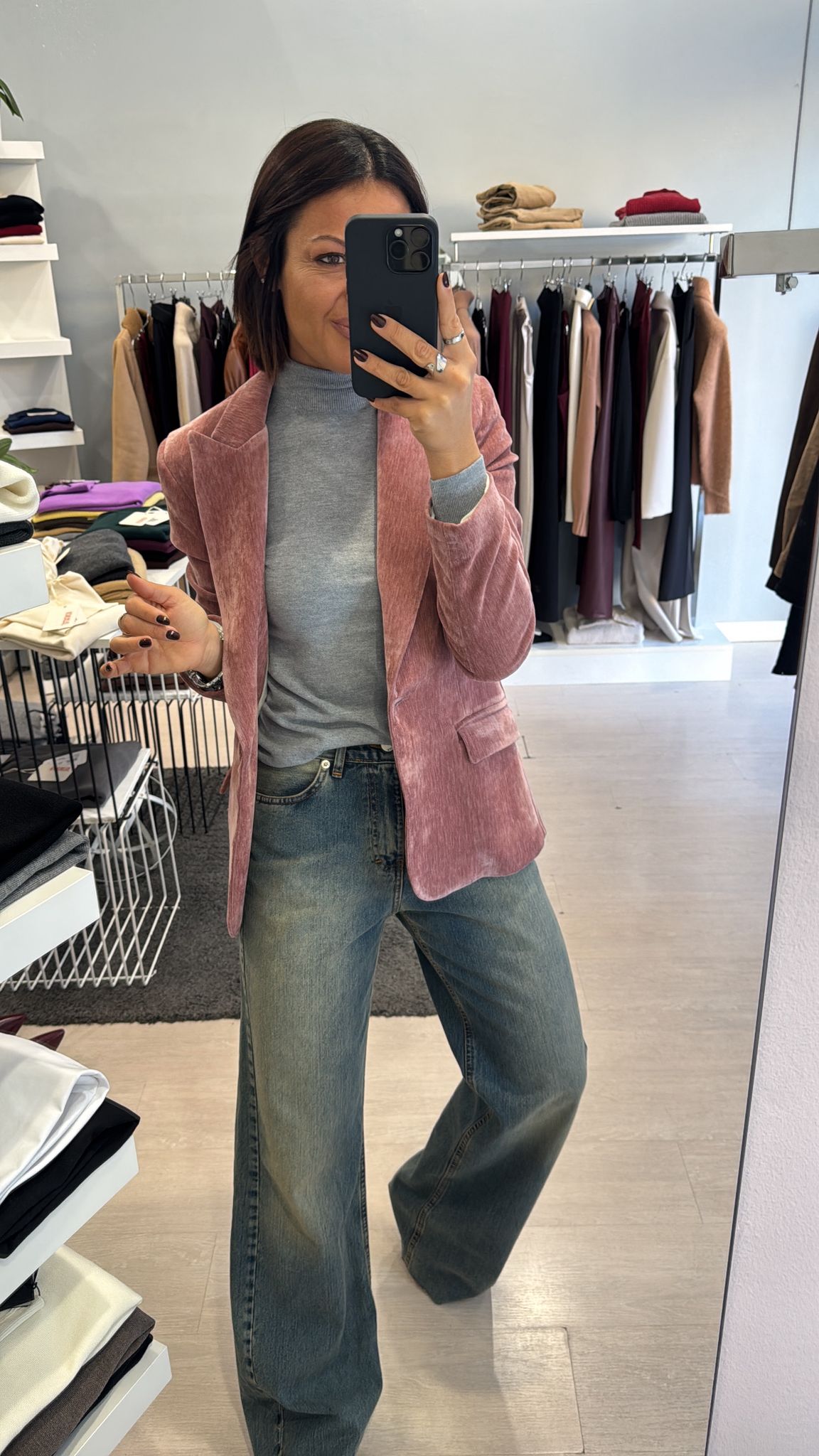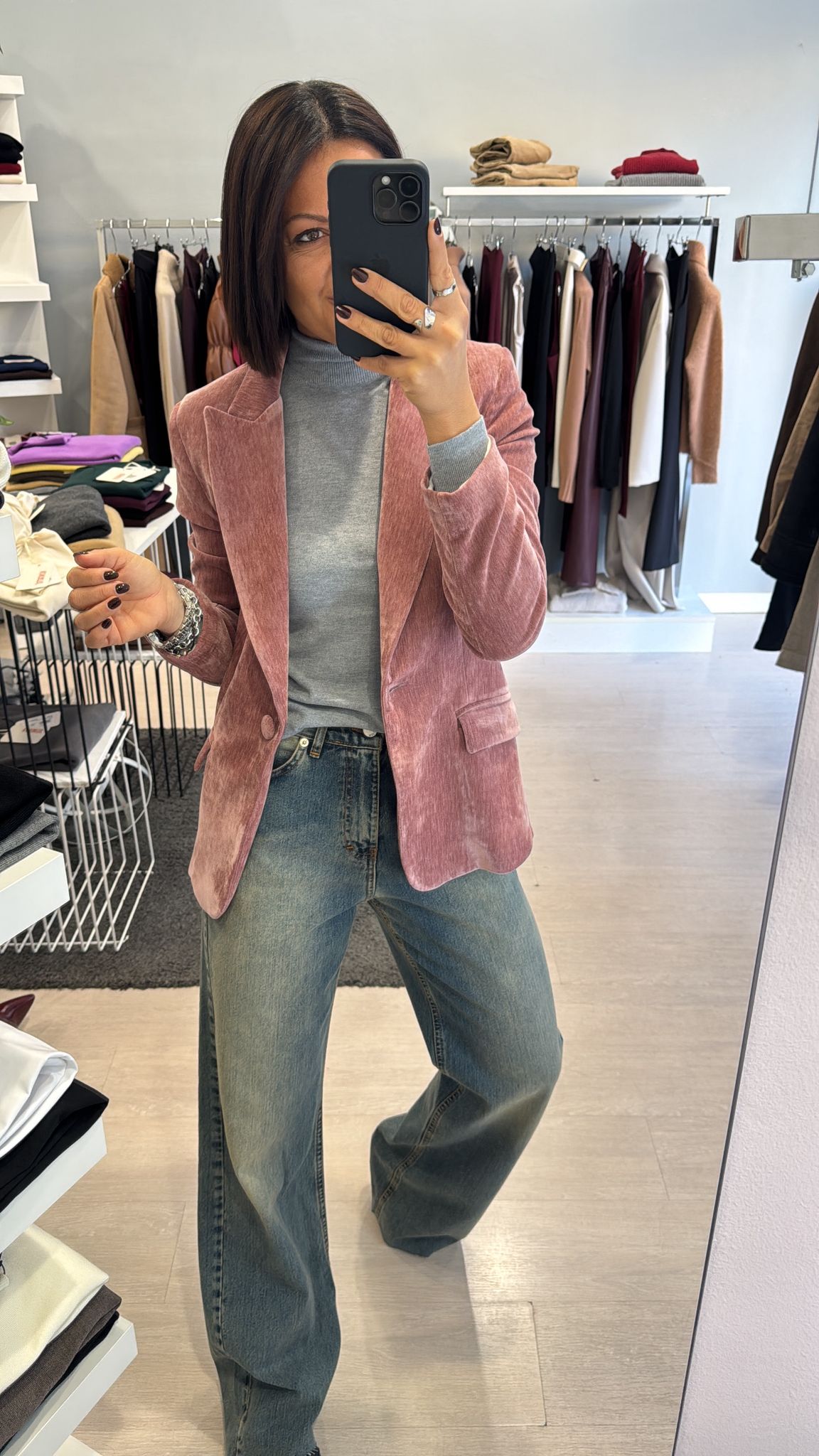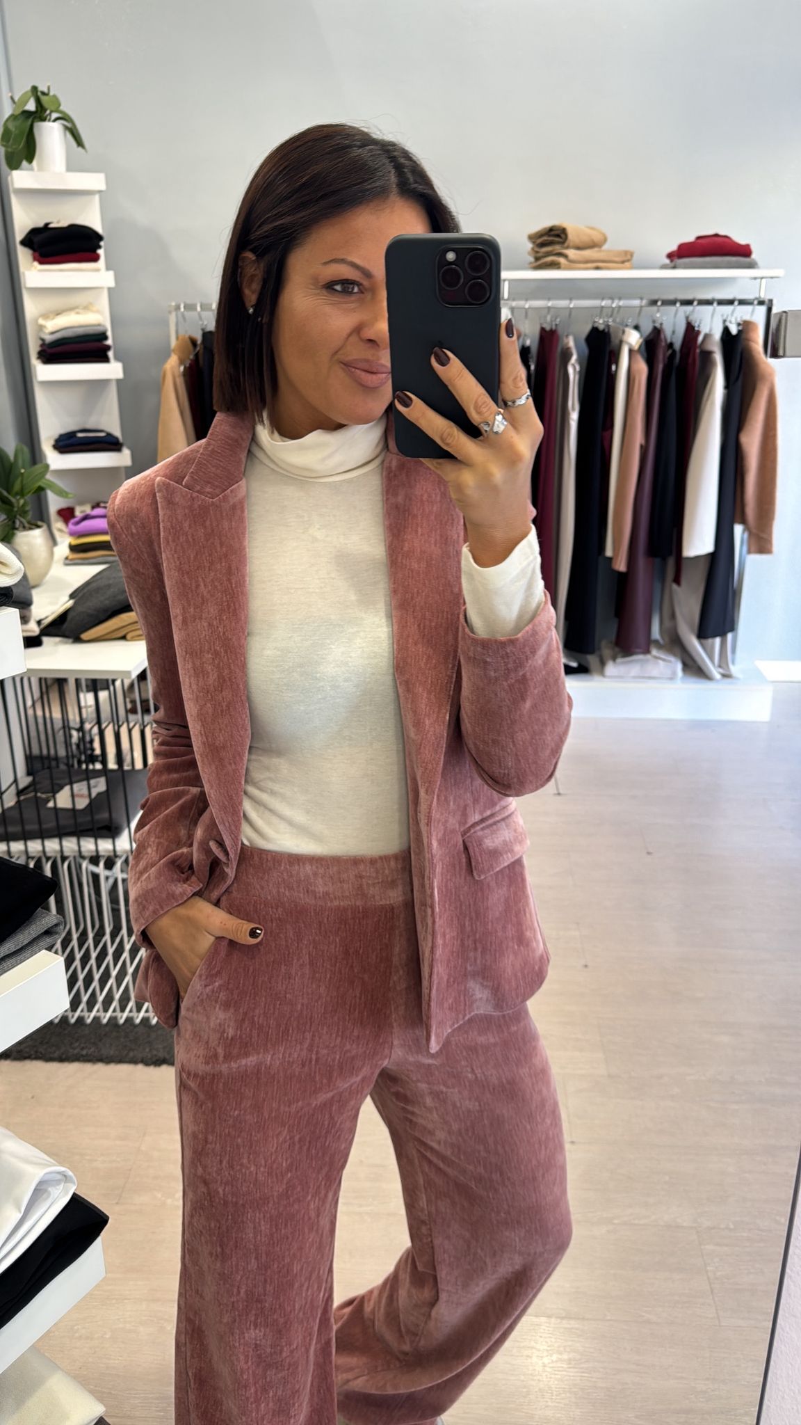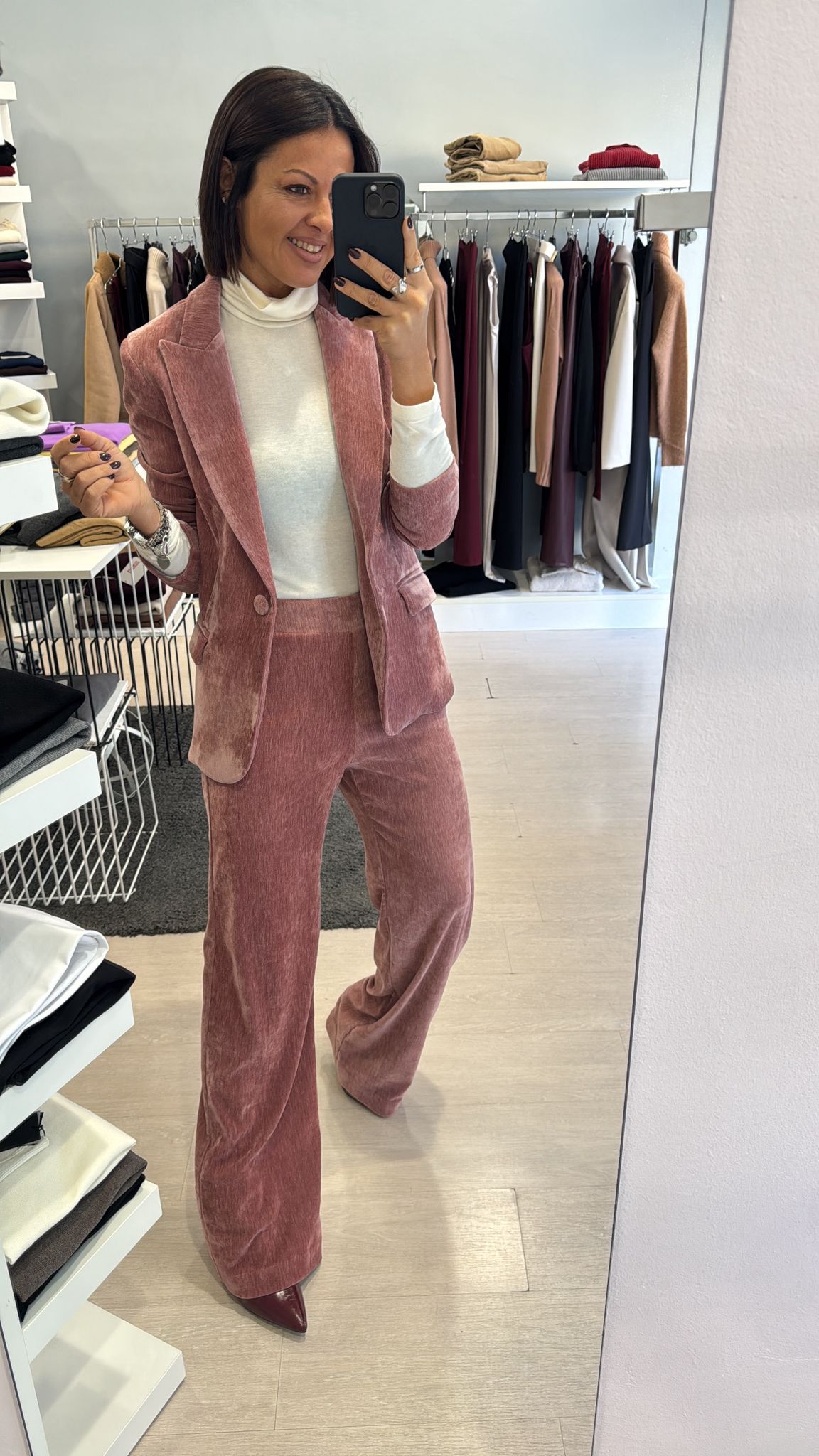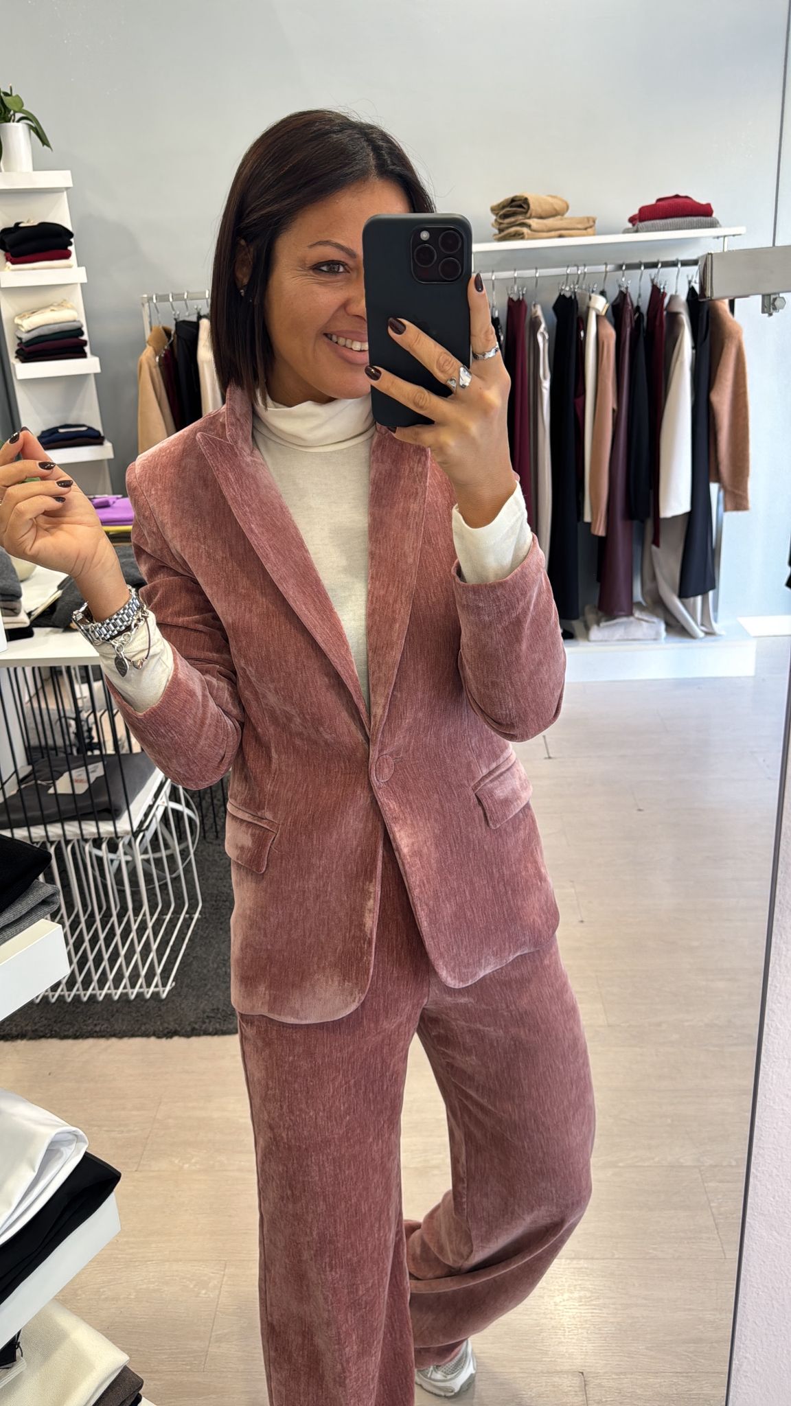 Giacca in velluto liscio, modello leggermente fittato, lunghezza al fianco, foderata internamente, chiusura ad un bottone vestibilità regolare IN FOTO...