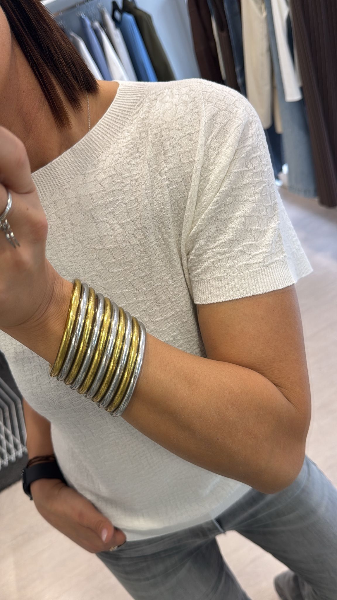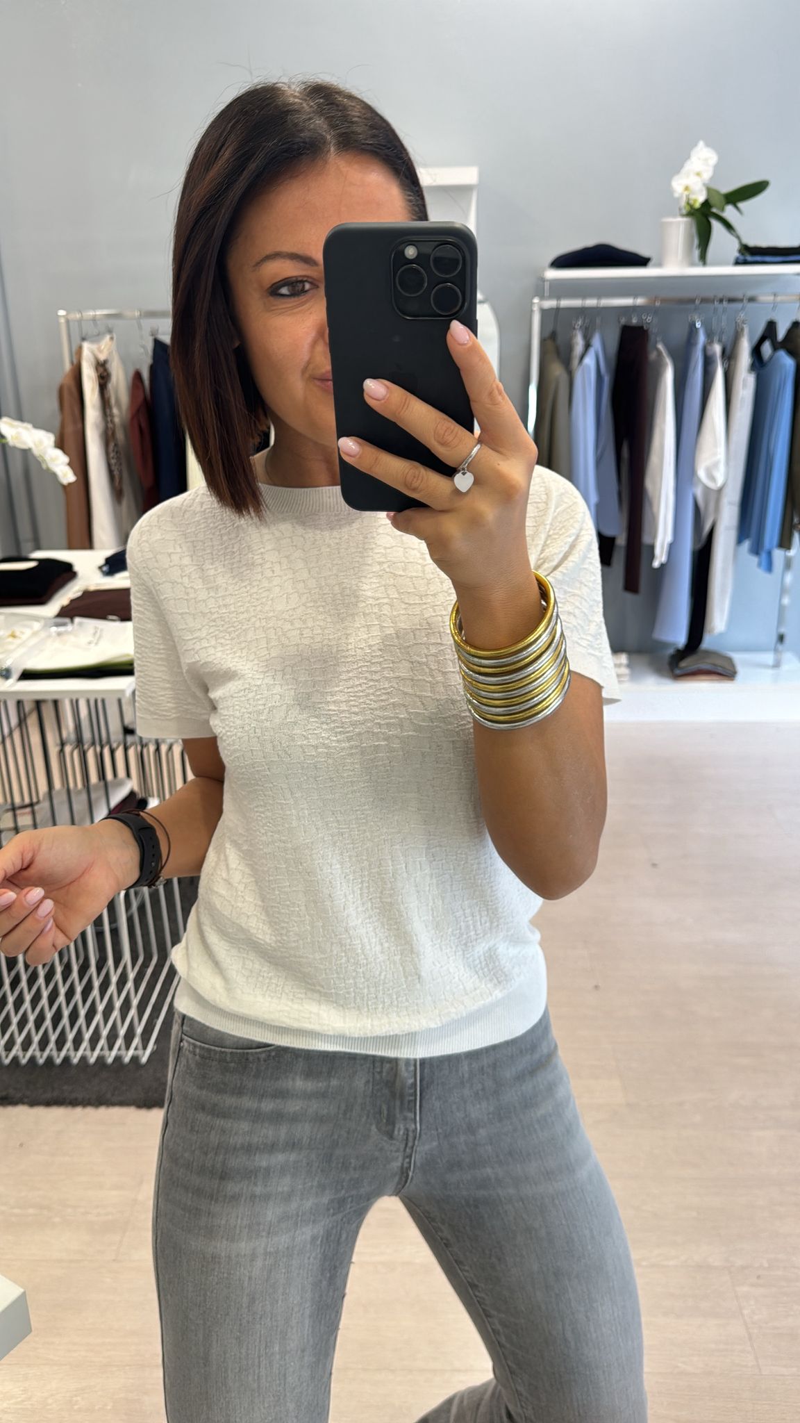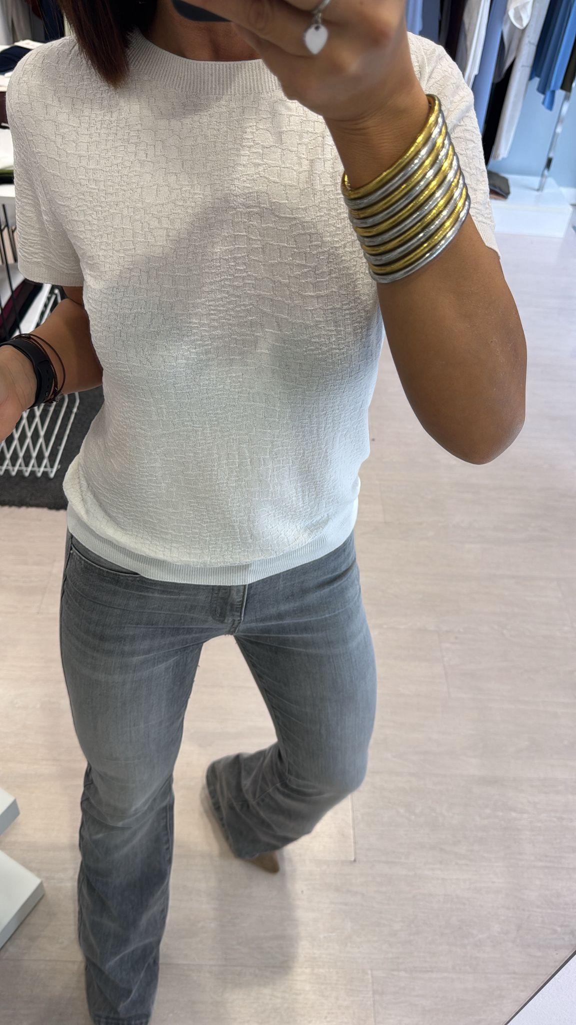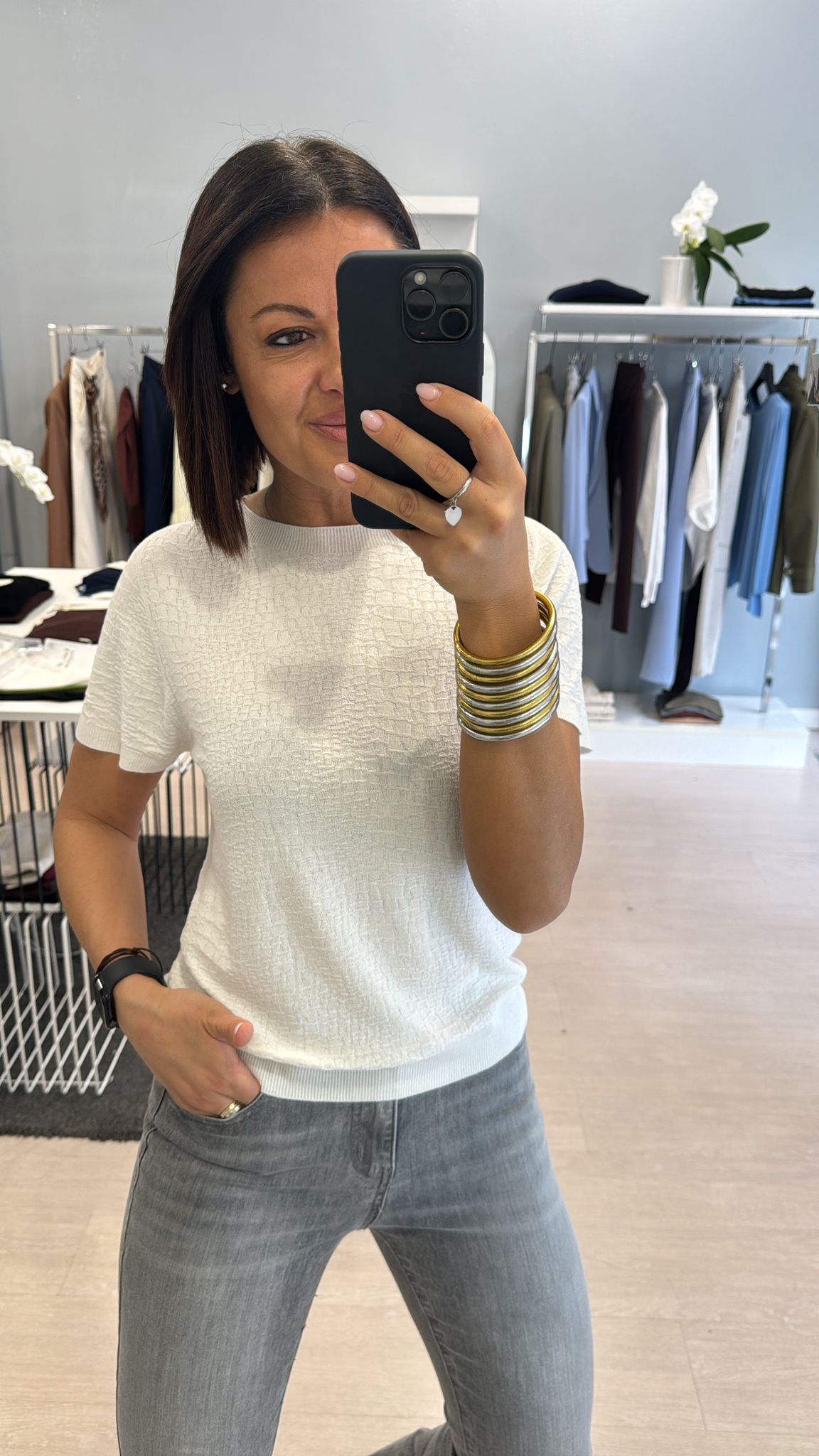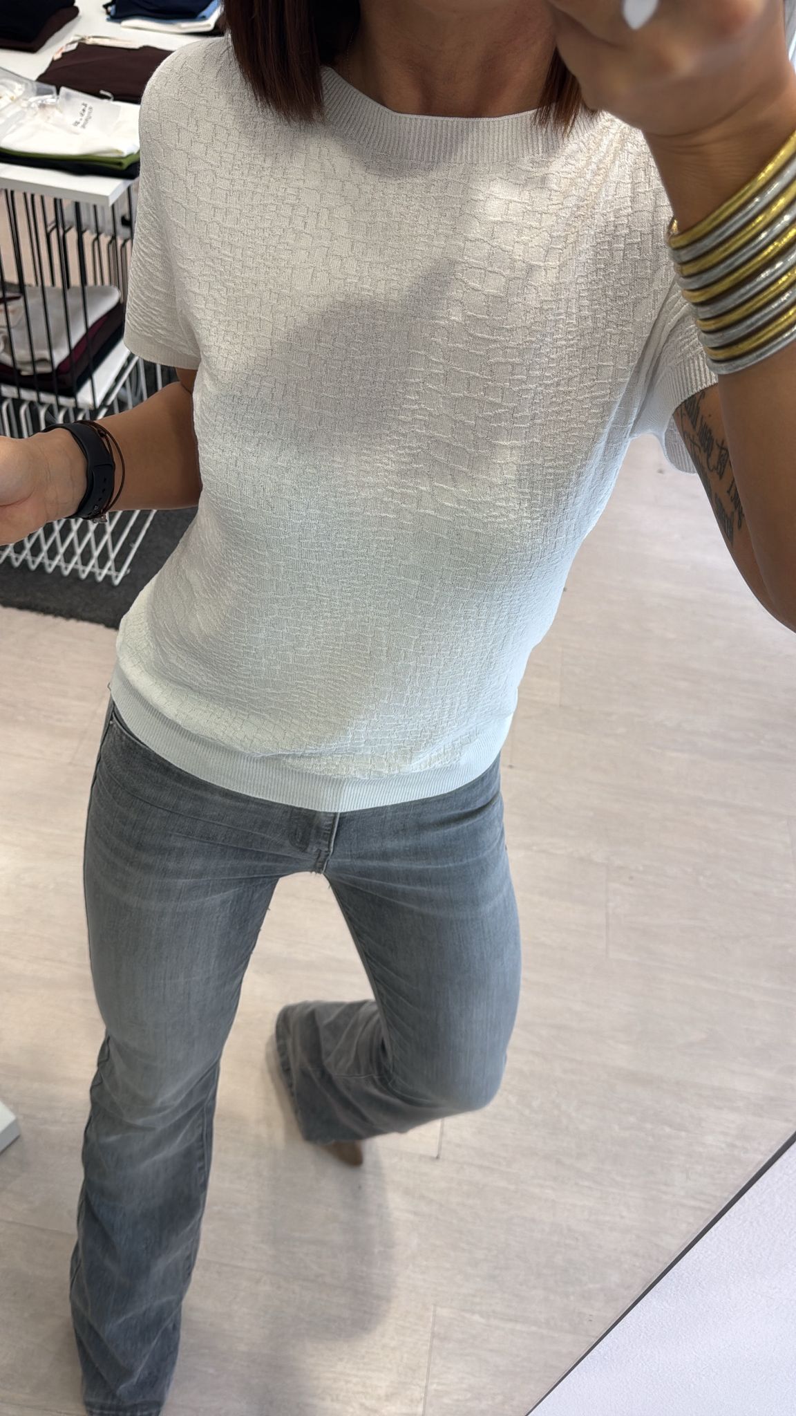 Girocollo con effetto cocco, modello manica corta, lunghezza regolare, effetto leggermente morbido