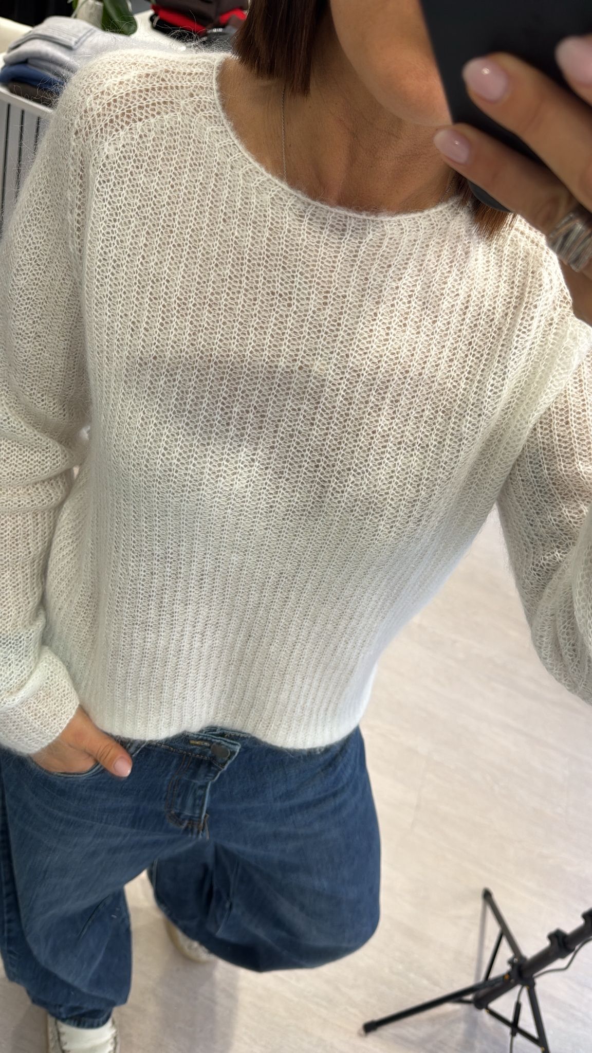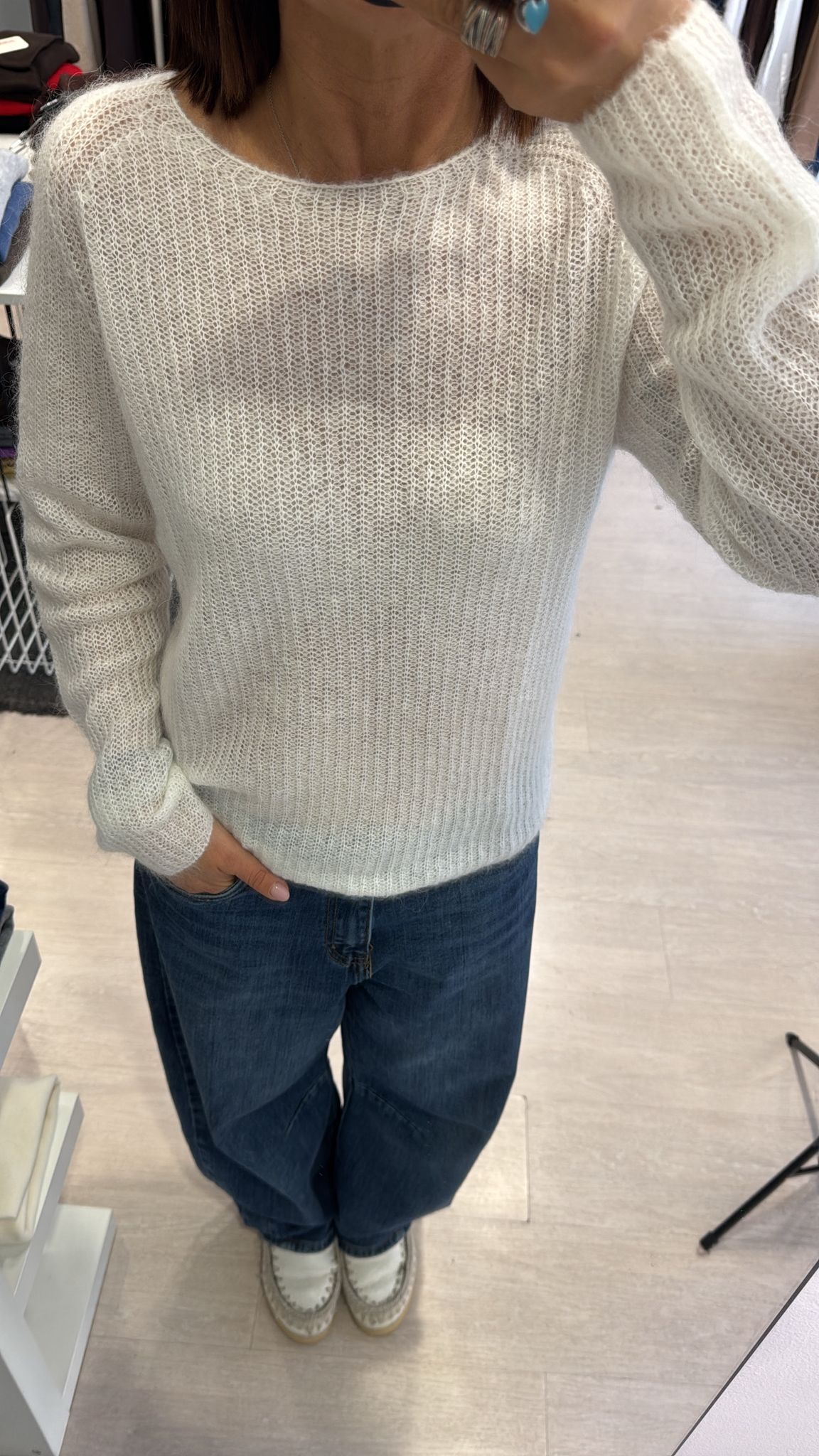 Maglia Kontatto scollo a barca, lunghezza regolare, modello dritto effetto leggermente morbido, lavorazione maglia inglese taglia unica colore: bianco 36%pc...