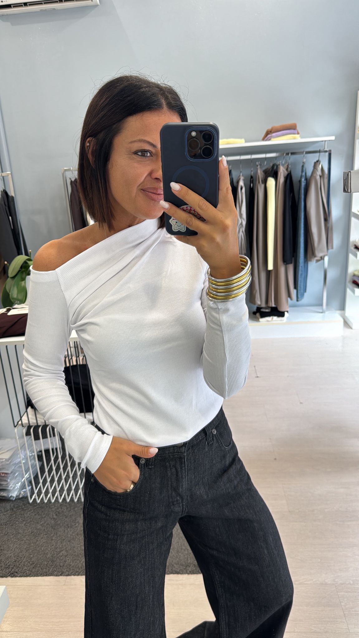 Maglia spalla scesa bianca