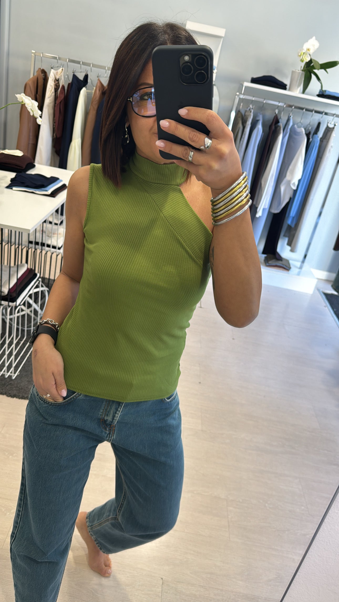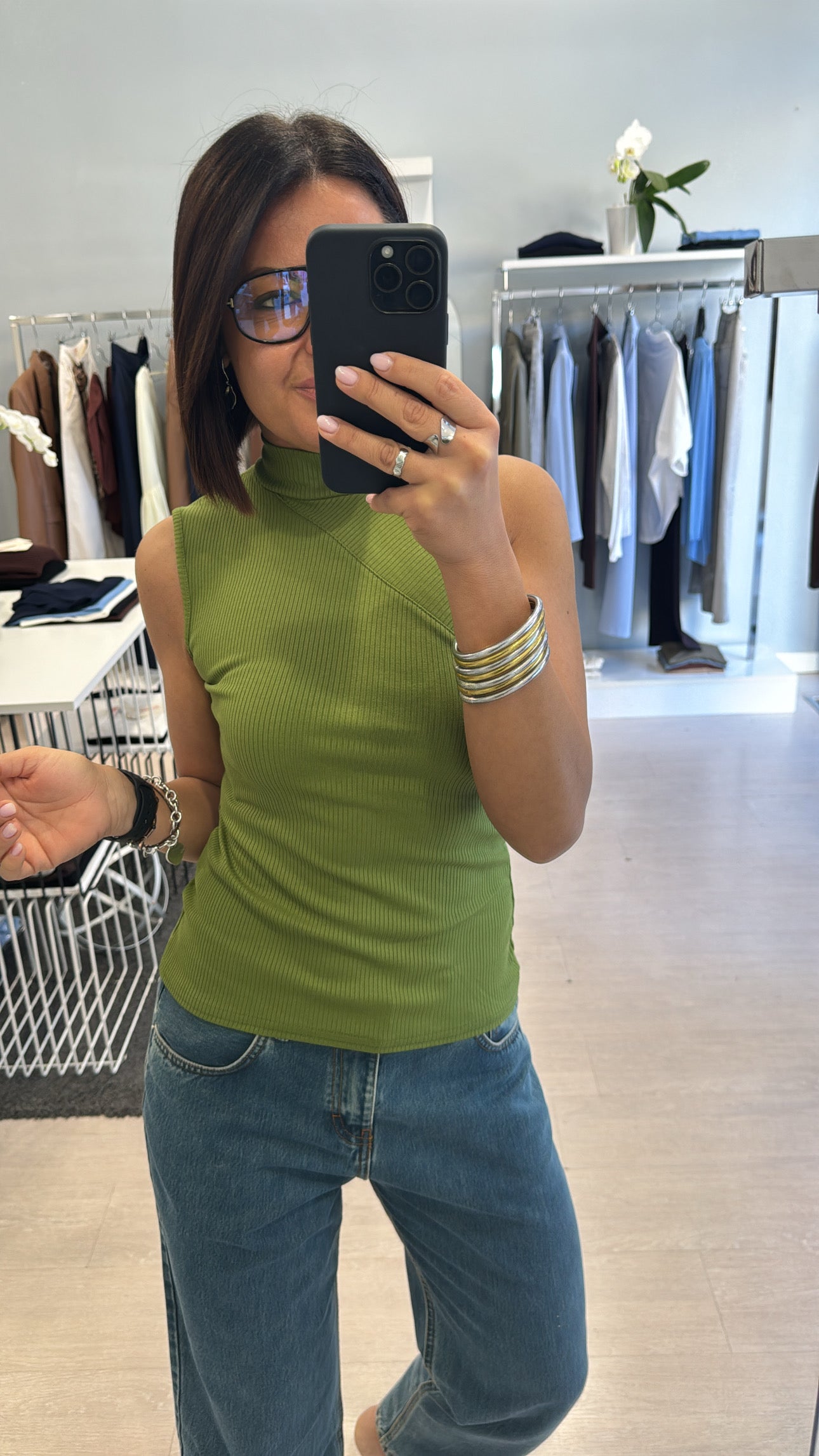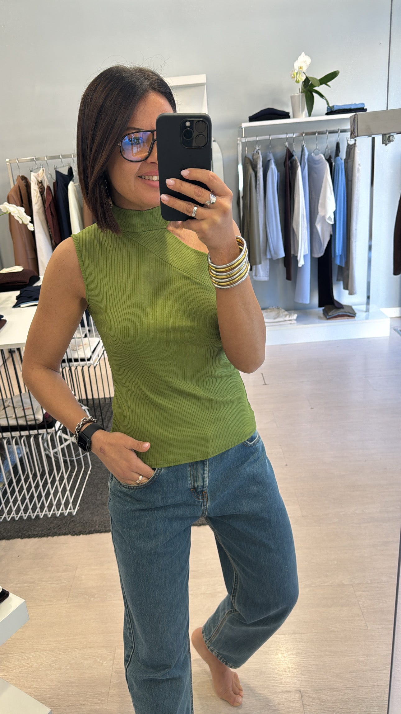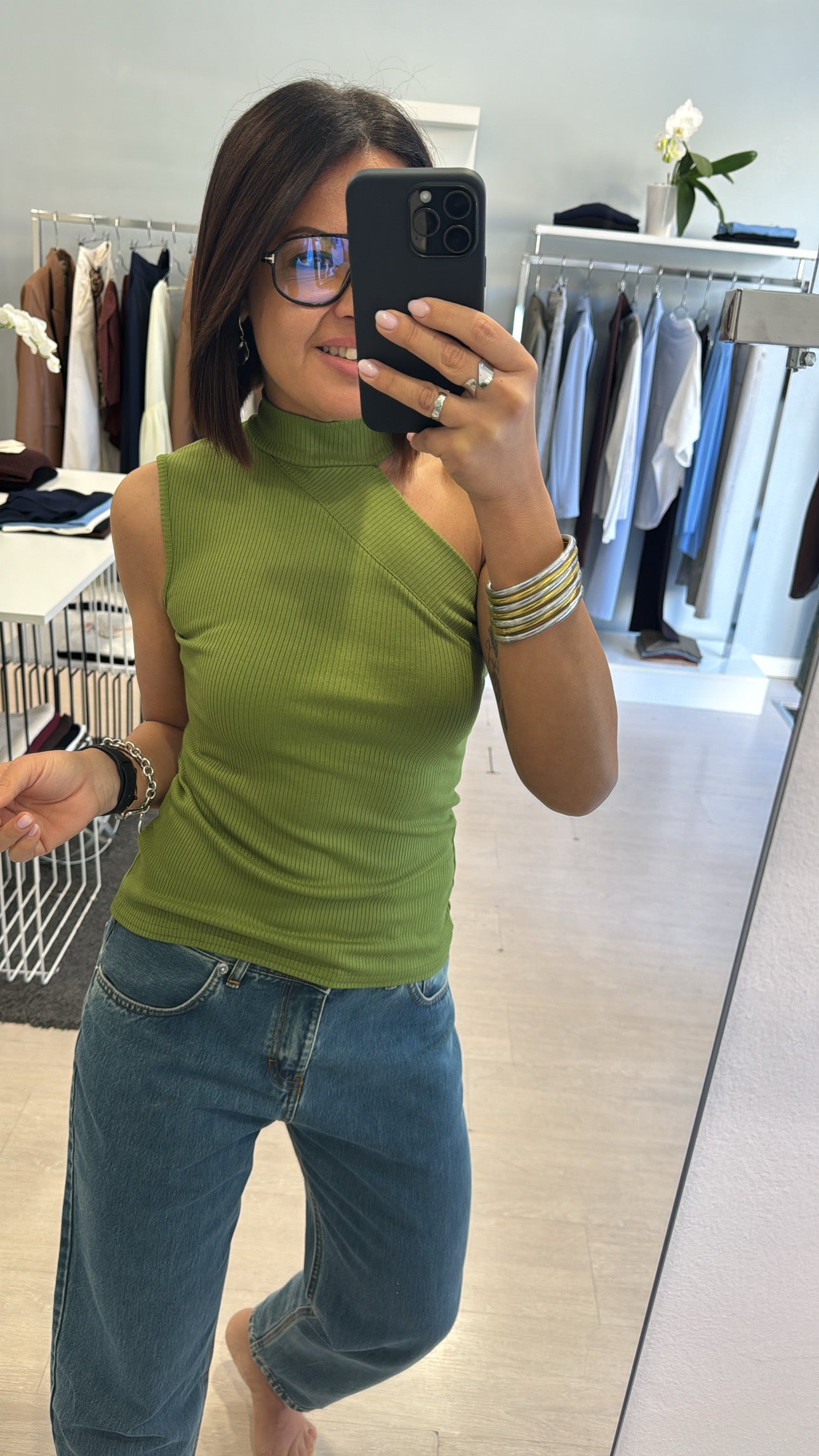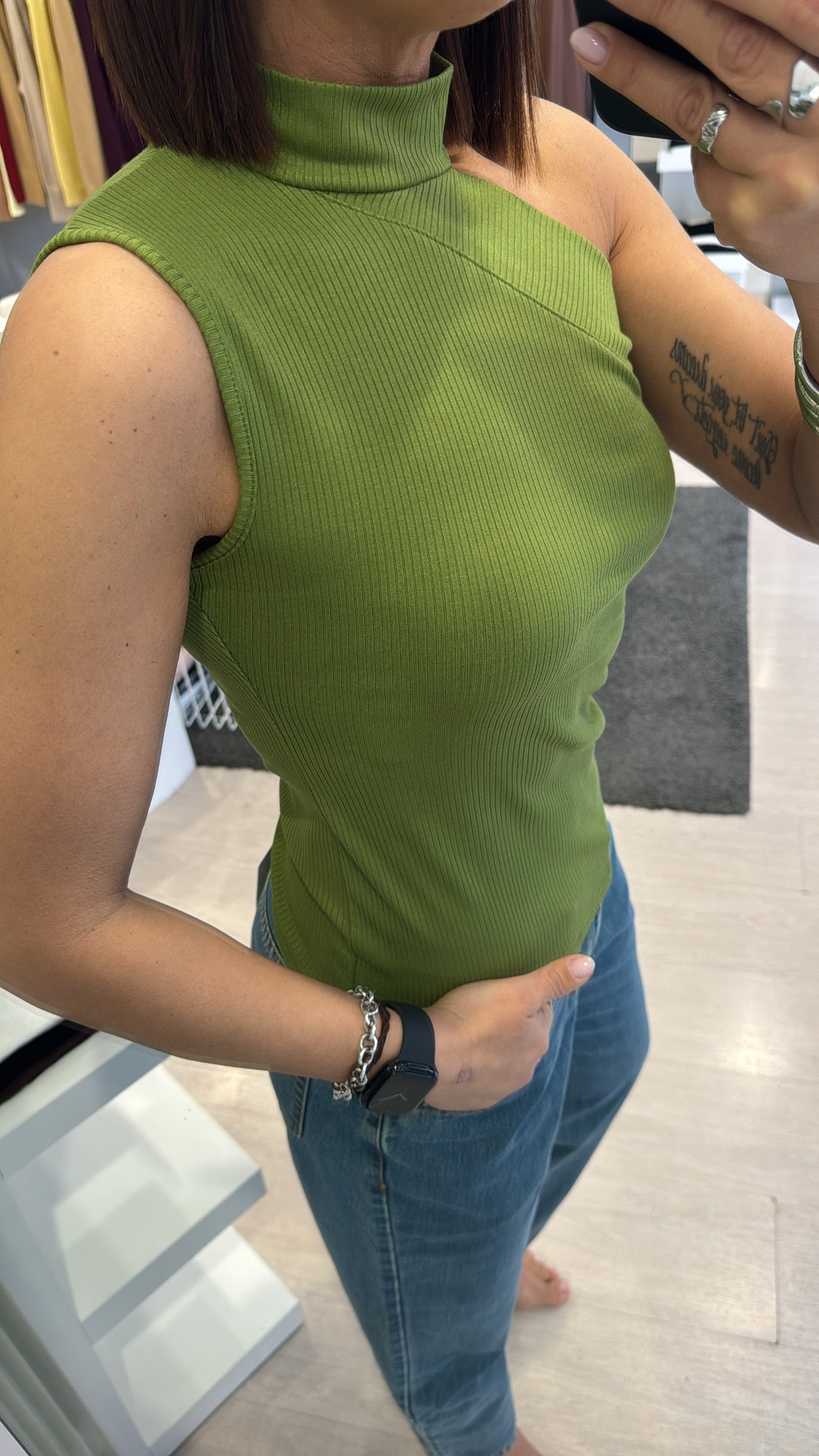 Monospalla con lavorazione a costina, collo a lupetto, modello sfiancato lunghezza regolare vestibilita’ regolare IN FOTO INDOSSO LA TAGLIA S...