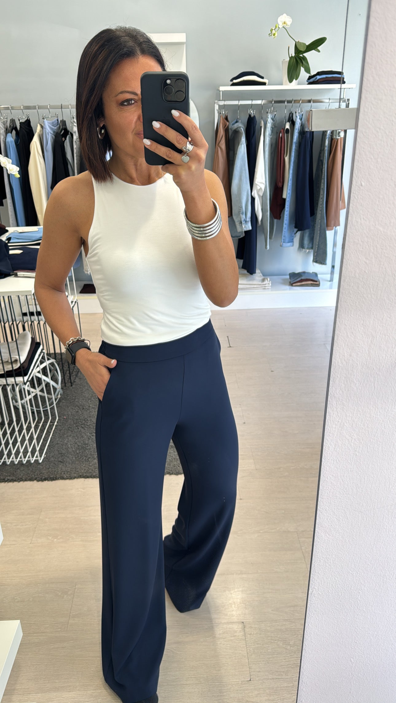 Pantalone Kontatto in tessuto fluido, modello dritto, elastico in vita e tasche laterali, vita altezza ombelico, sfiancato in vita per... Per saperne di più Per saperne di più
