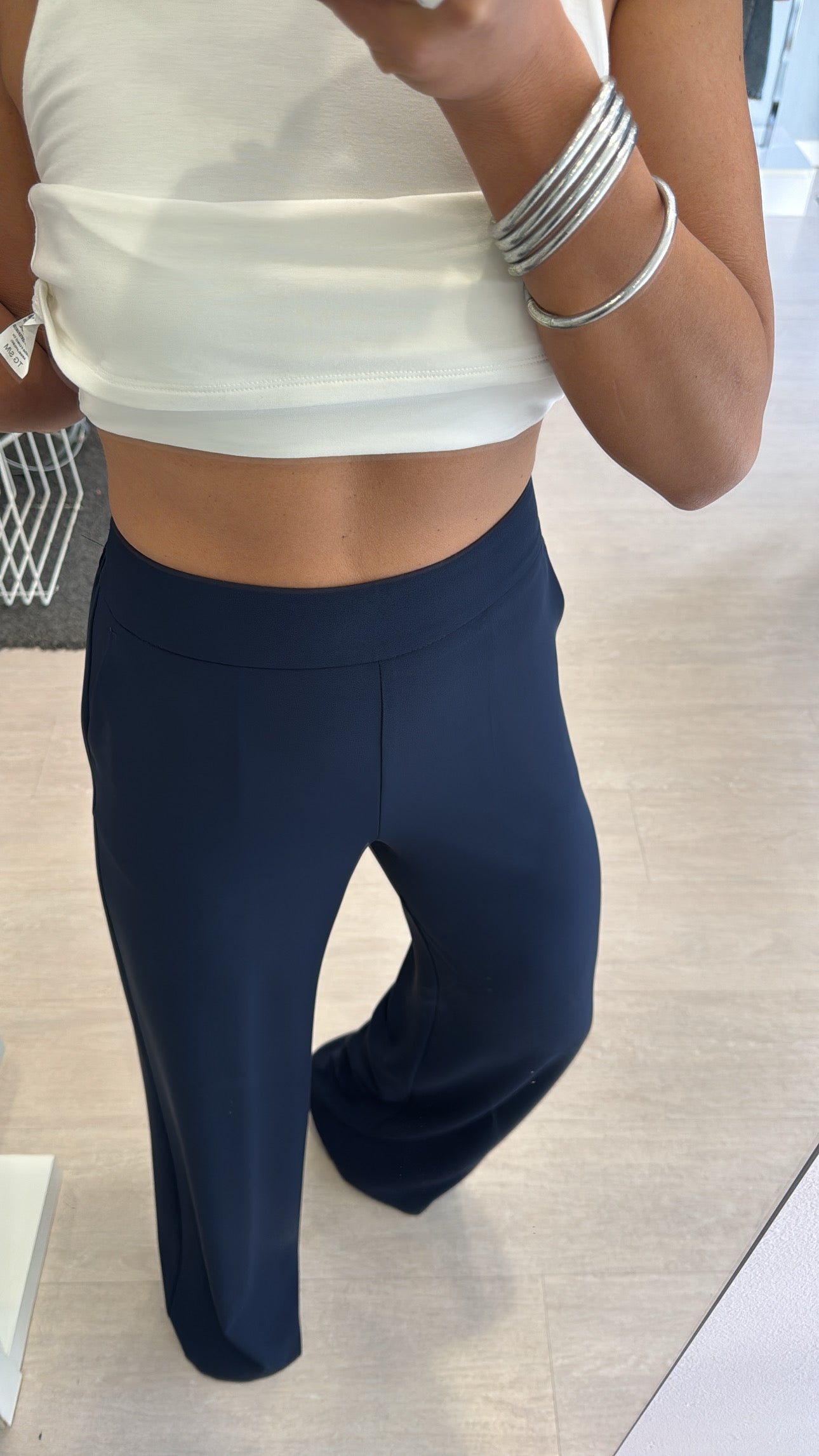 Pantalone Kontatto in tessuto fluido, modello dritto, elastico in vita e tasche laterali, vita altezza ombelico, sfiancato in vita per poi scivolare dritto