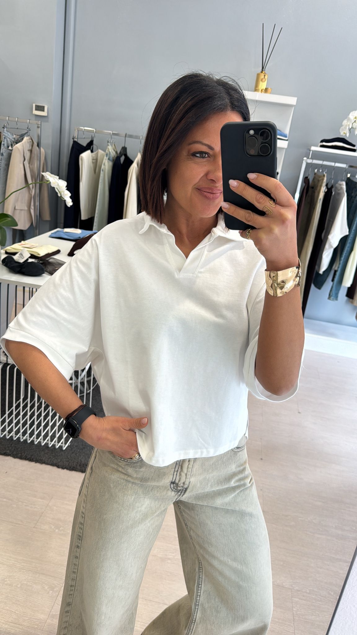 Polo boxy fit in cotone bianca