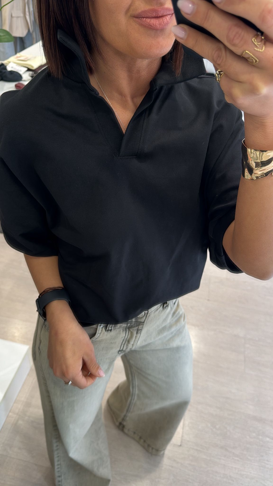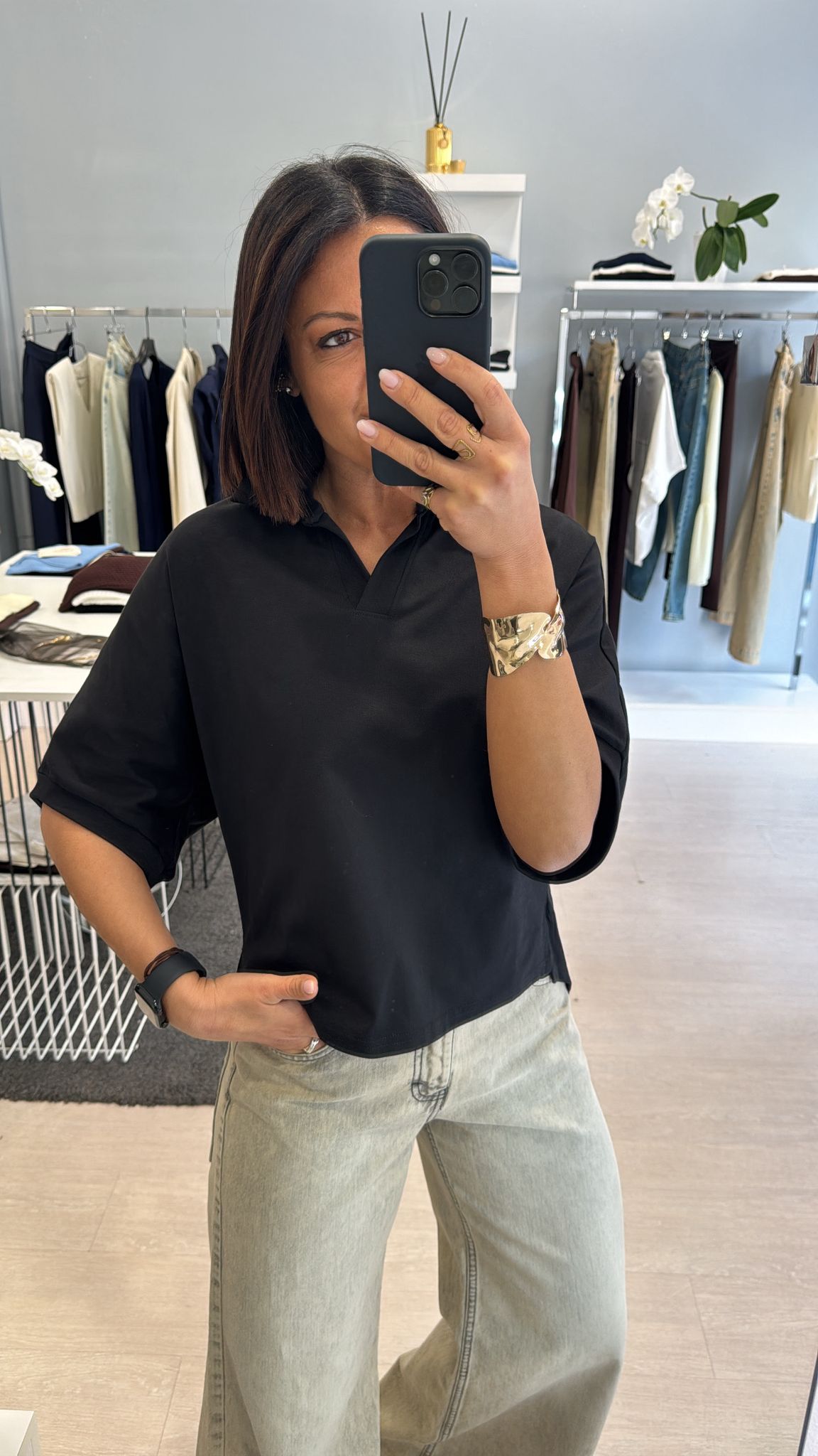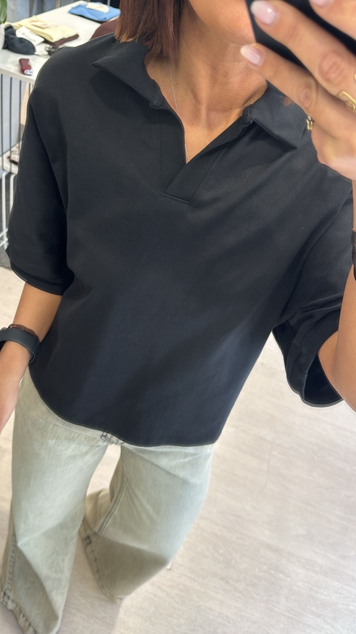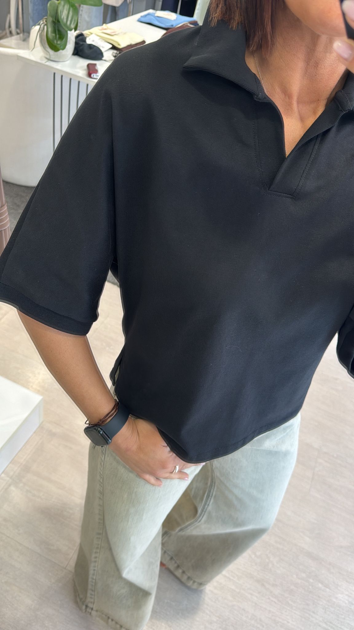 Polo boxy fit in cotone nera