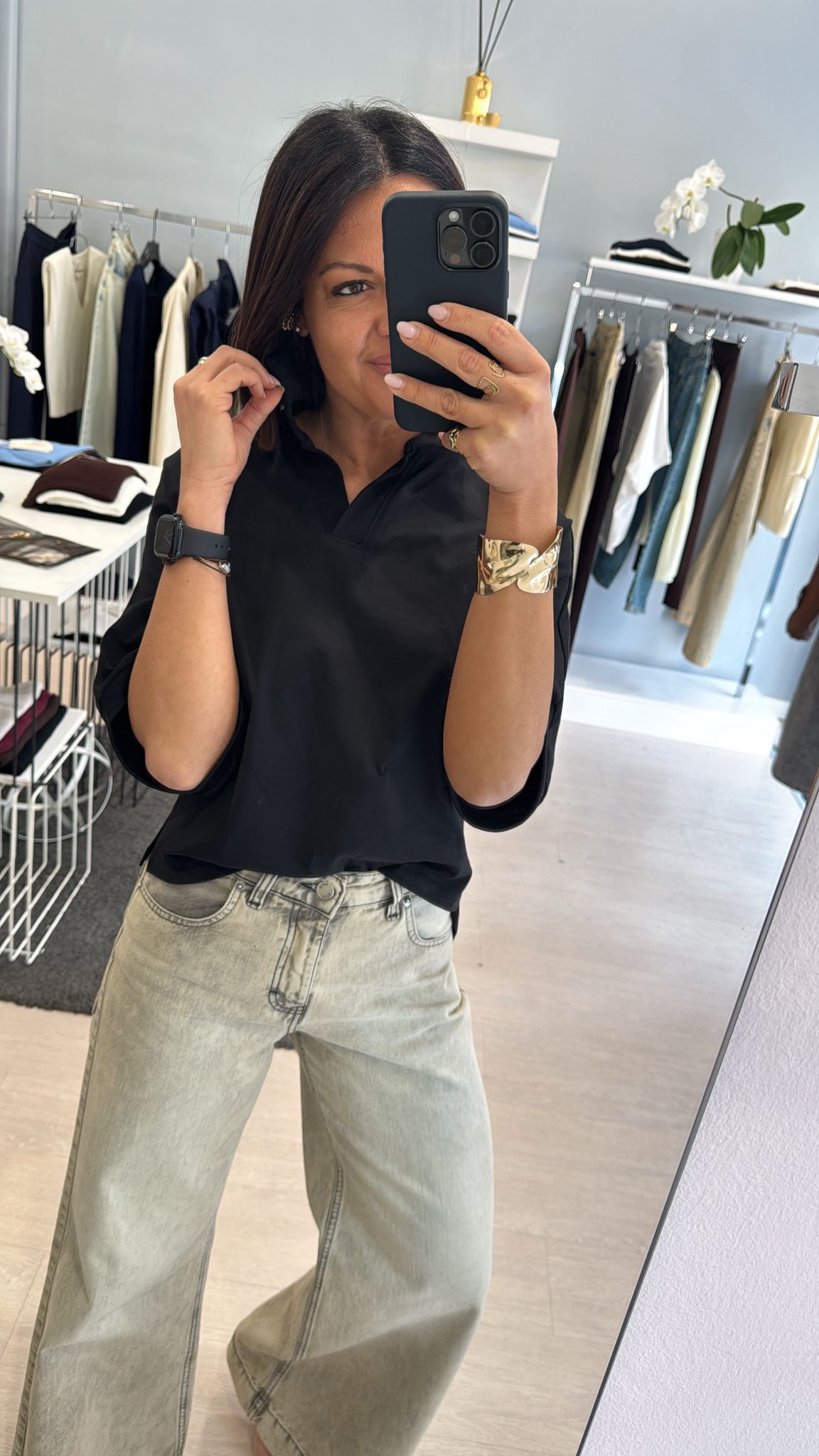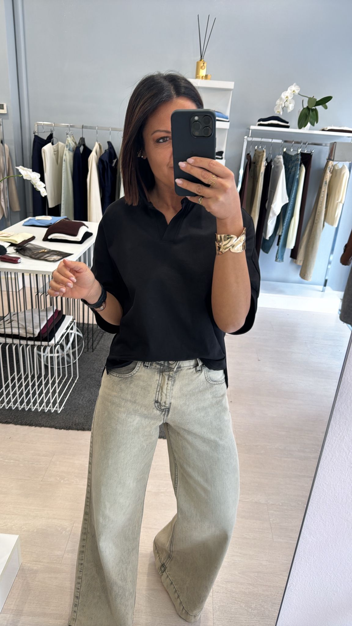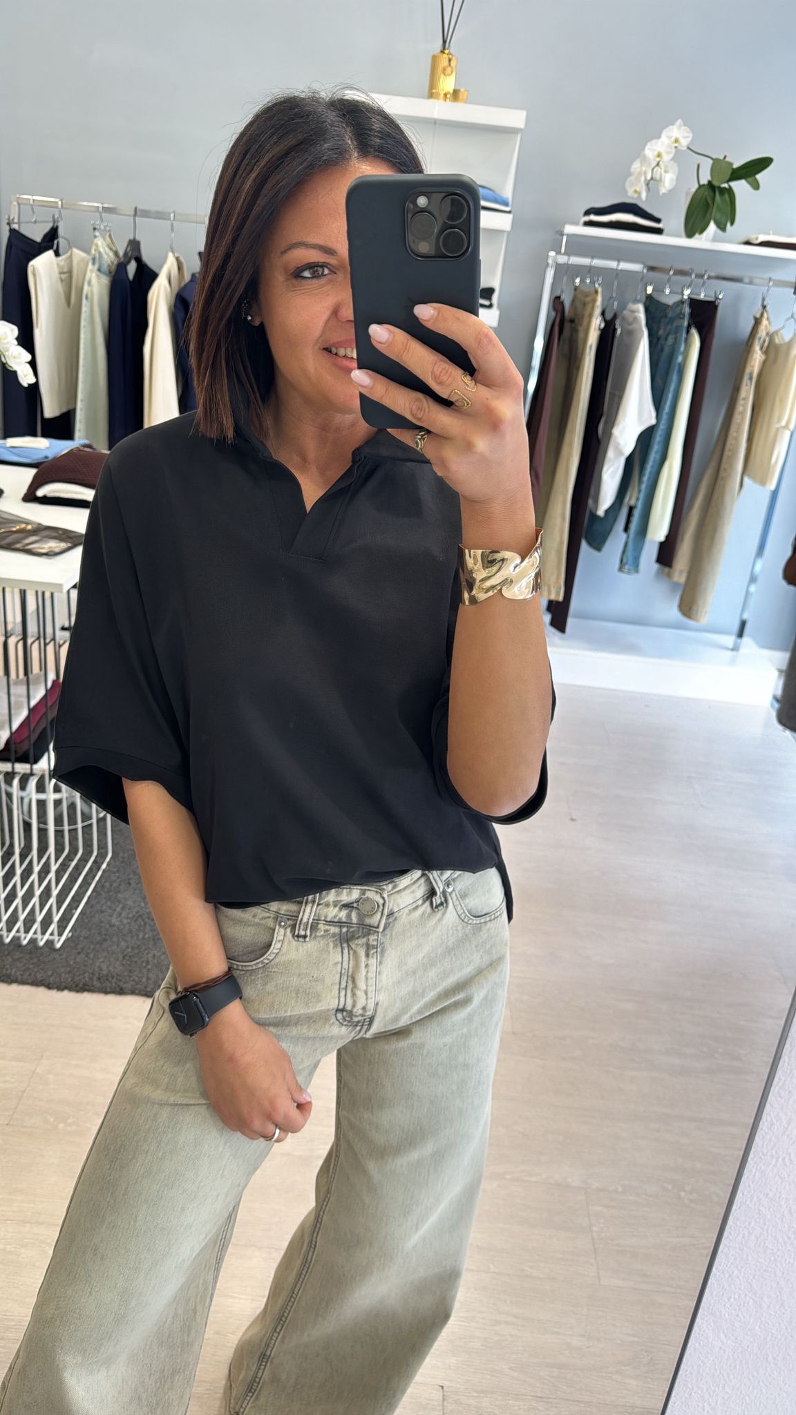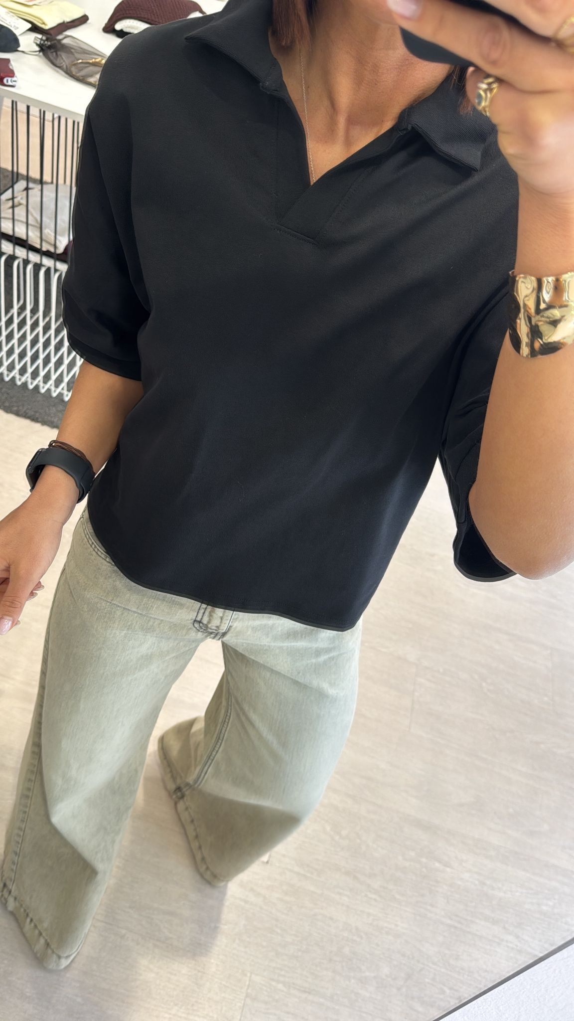 Polo boxy fit in cotone nera
